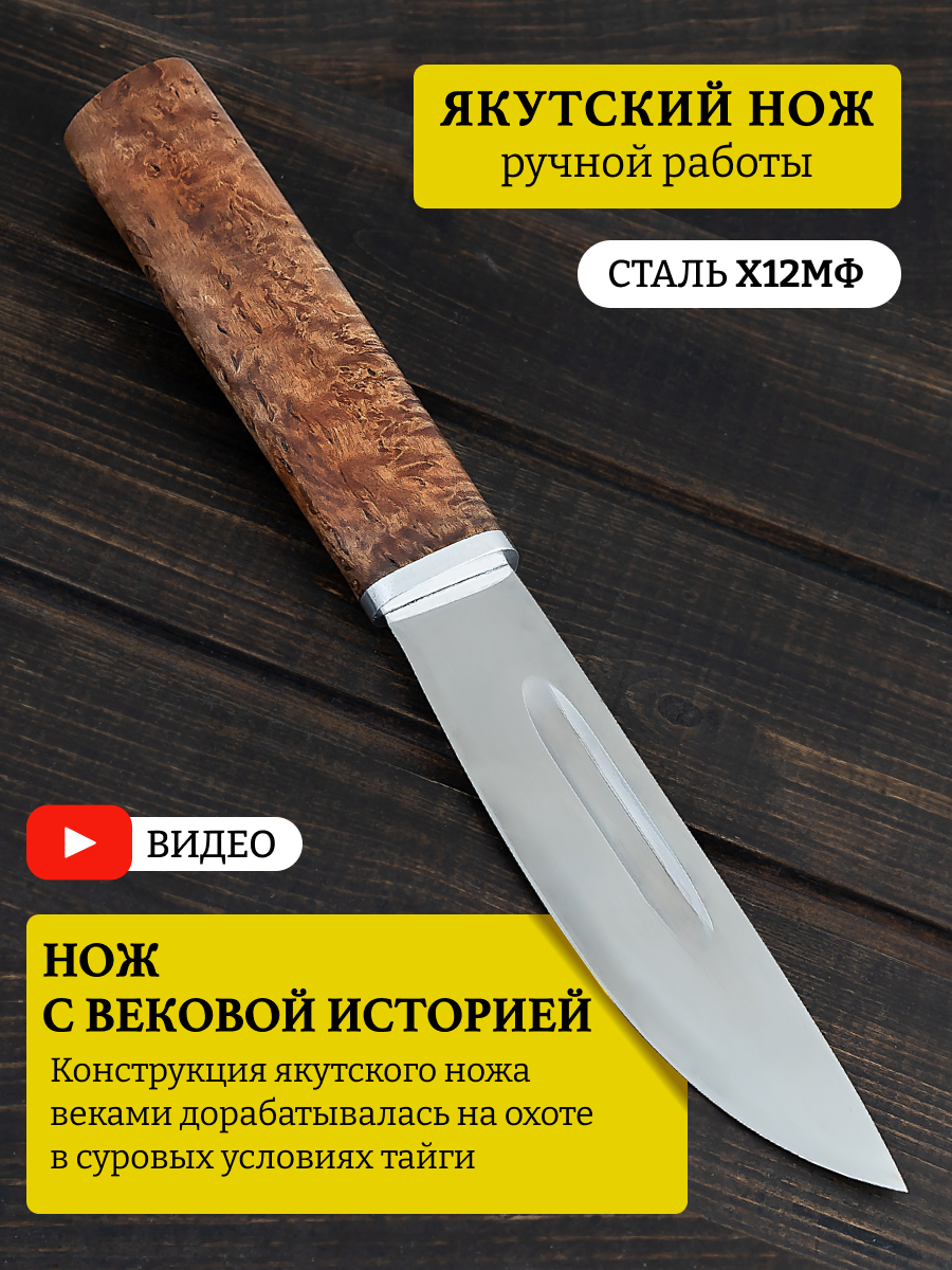 Купить Нож охотничий якутский туристический из стали Х12МФ с доставкой по всей России. Нож охотничий якутский туристический из стали Х12МФ: сравнение цен, характеристики, фото, актуальное наличие и цены.
