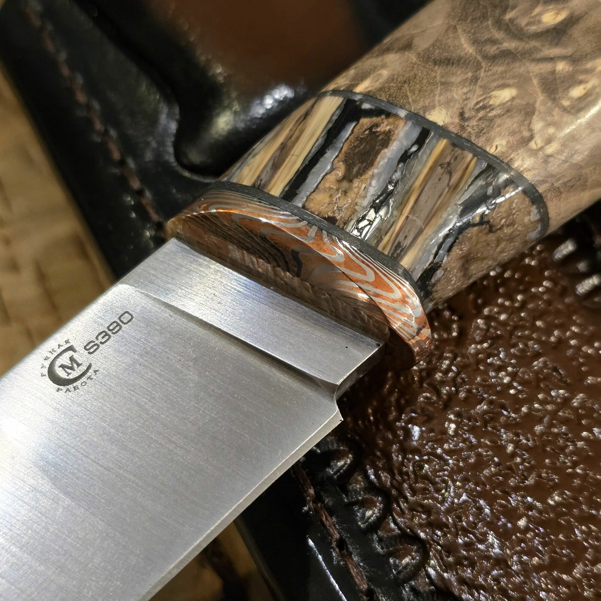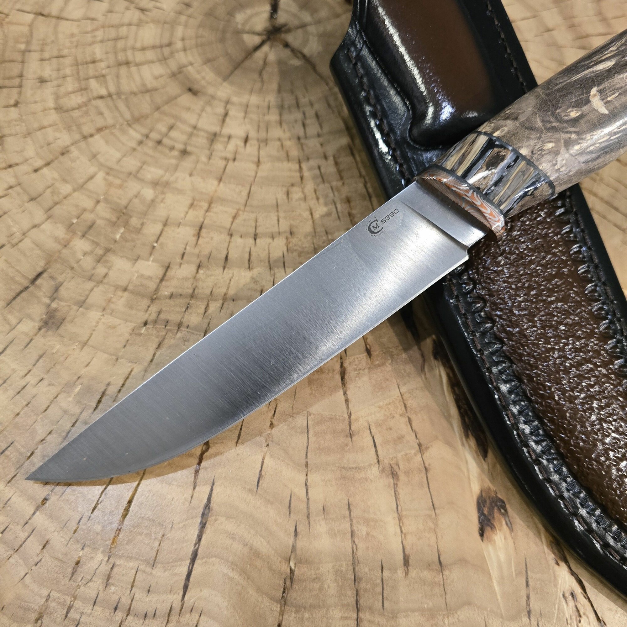Нож Пантера с формованными ножнами, сталь S390, рукоять кап клена, вставка стабилизированный зуб мамонта, Мастерская Семина: сравнение цен, характеристики, фото, актуальное наличие и цены.