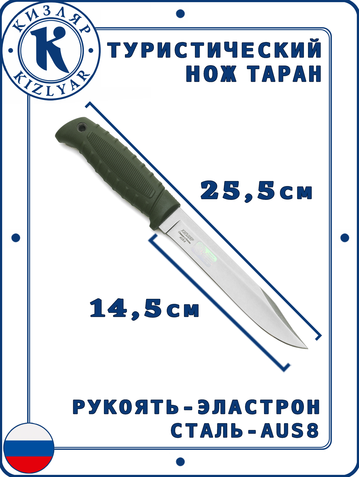 Купить Нож походный Кизляр Таран, Сталь: AUS-8, Рукоять: Эластрон ( хаки ) с доставкой по всей России. Нож походный Кизляр Таран, Сталь: AUS-8, Рукоять: Эластрон ( хаки ): сравнение цен, характеристики, фото, актуальное наличие и цены.