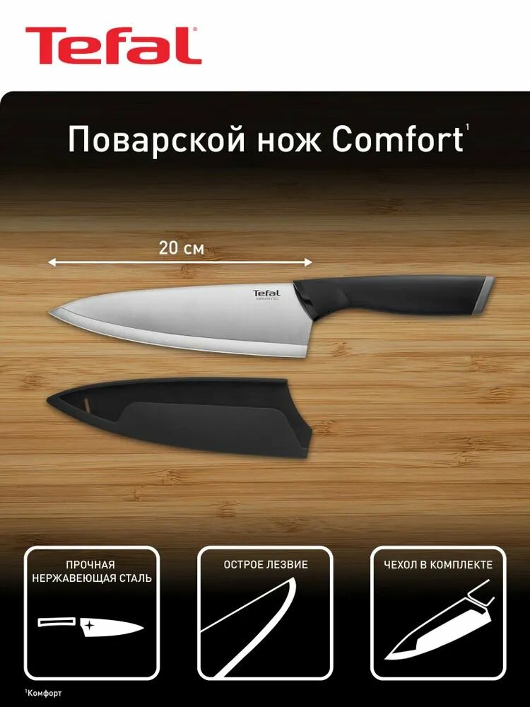 Серия высококачественных гаджетов и аксессуаров Tefal Comfort создана для того, чтобы облегчить процесс приготовления любимых блюд и гарантировать идеальные результаты. Универсальный нож Tefal Comfort K2213204 предназначен для нарезания и измельчения овощей, фруктов и других продуктов. Защитный чехол для безопасного хранения и долгой службы ножа