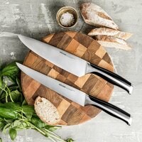 Ручка выполнена из кованной нержавеющей стали со вставкой из ABS-пластика, которая не позволяет ножу скользить в руке.