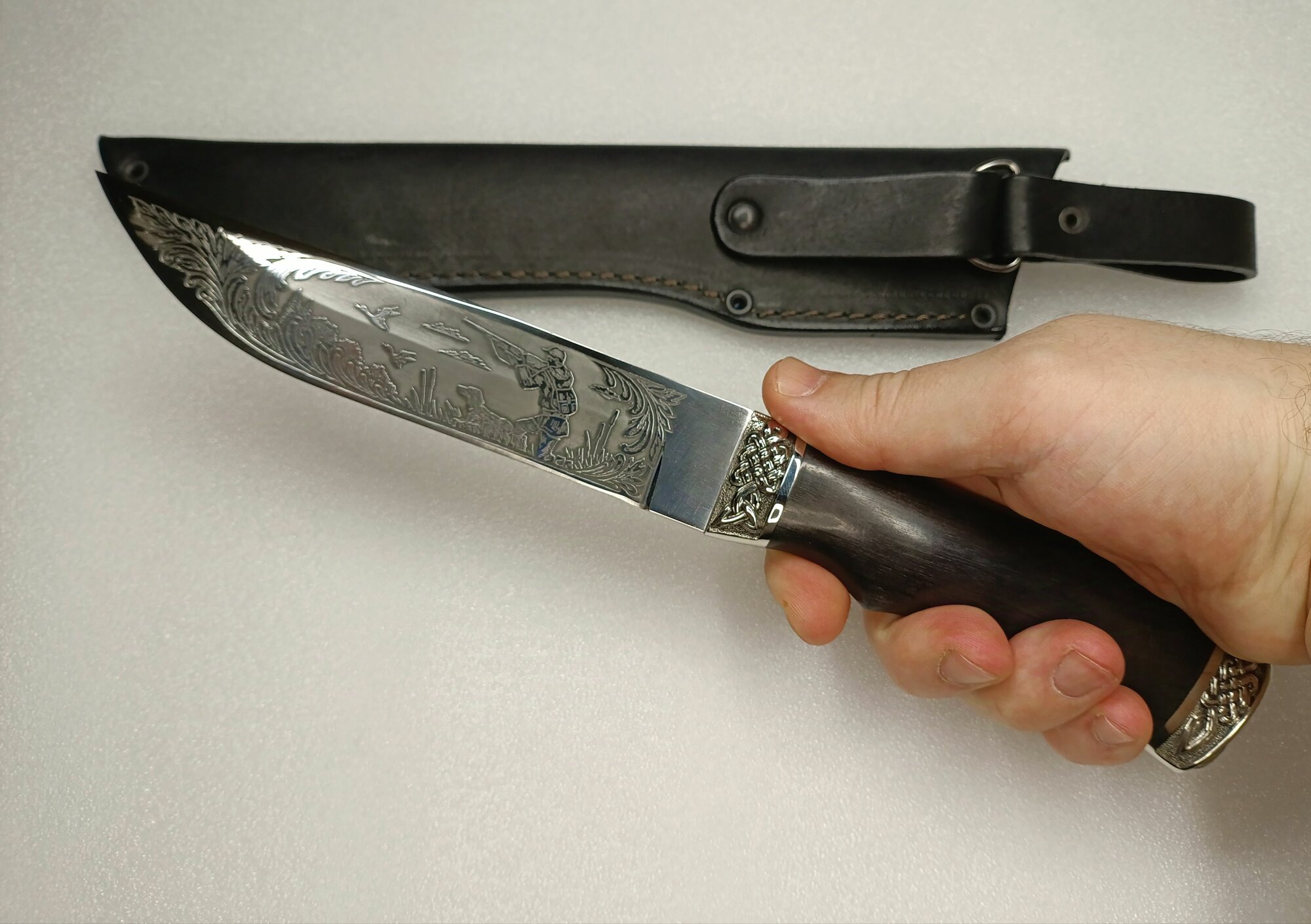 Нож Ручной Работы Охотник сталь 95х18 длина 31см ножны натуральная кожа в комплекте: сравнение цен, характеристики, фото, актуальное наличие и цены.