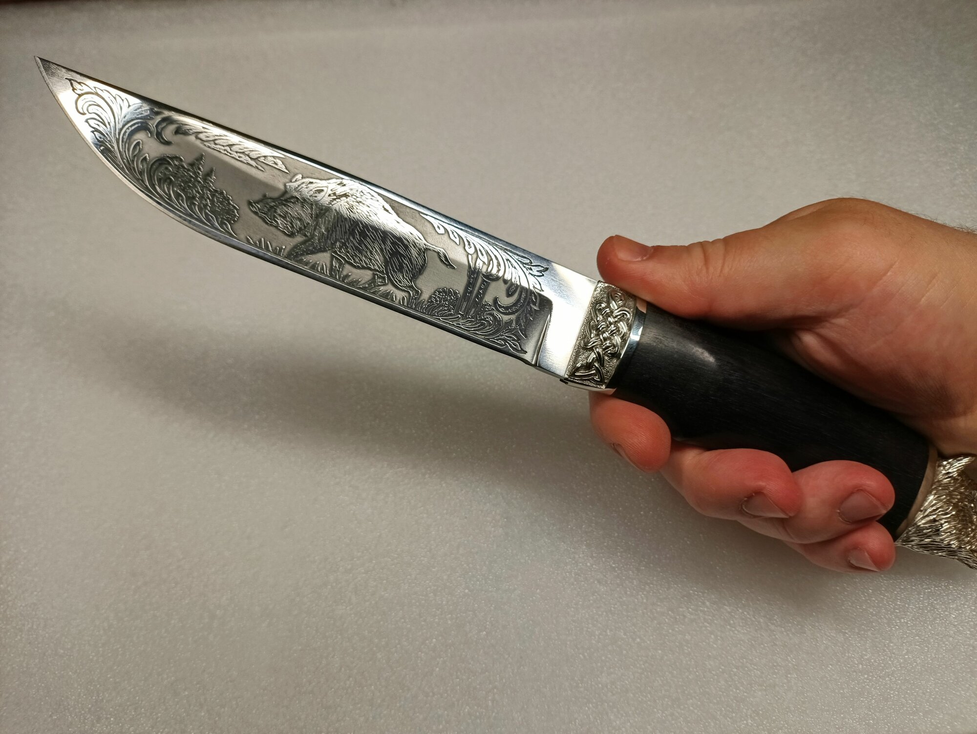 Нож Ручной Работы "Вепрь" сталь 95х18 длина 31см ножны натуральная кожа в комплекте.