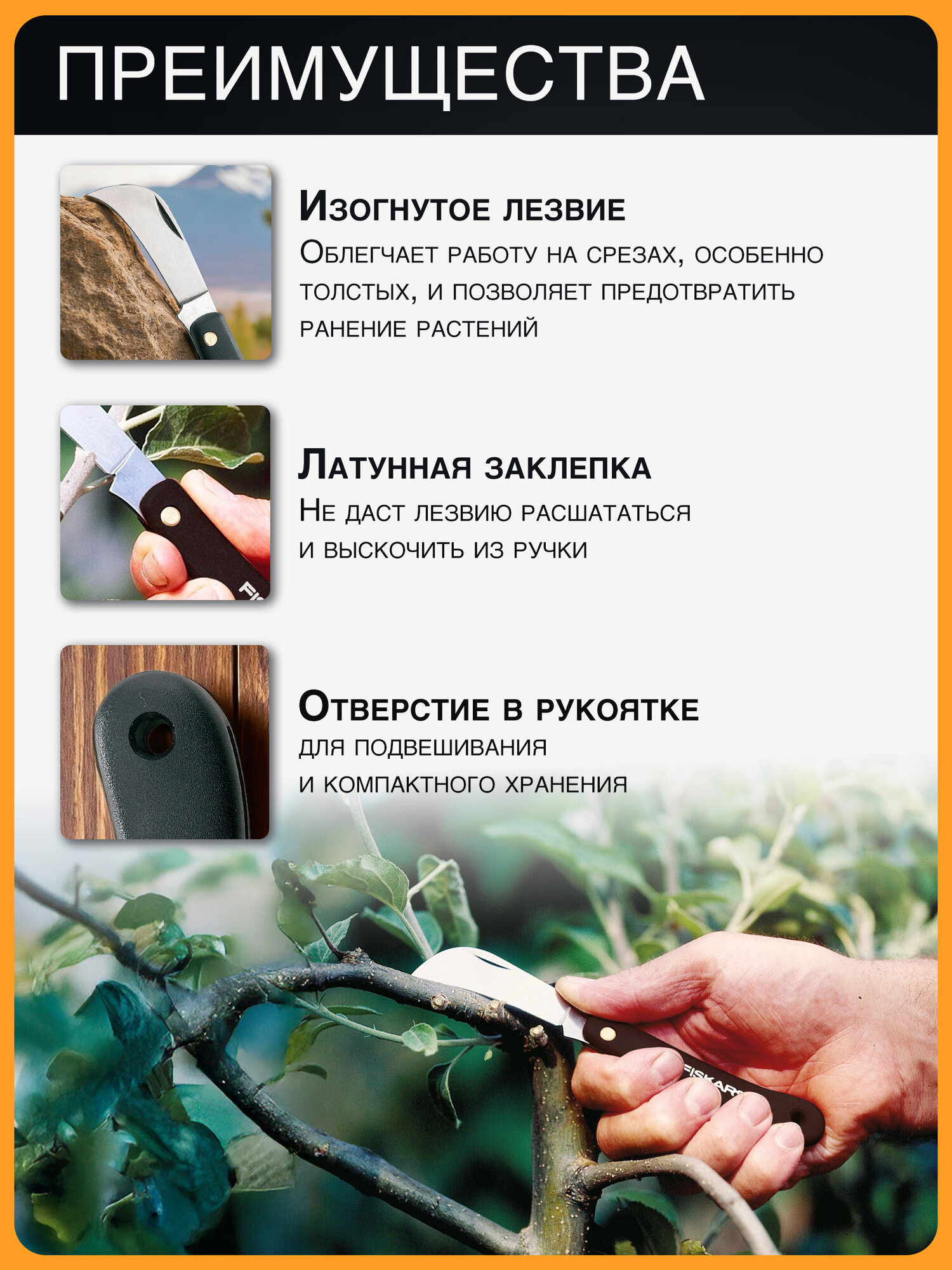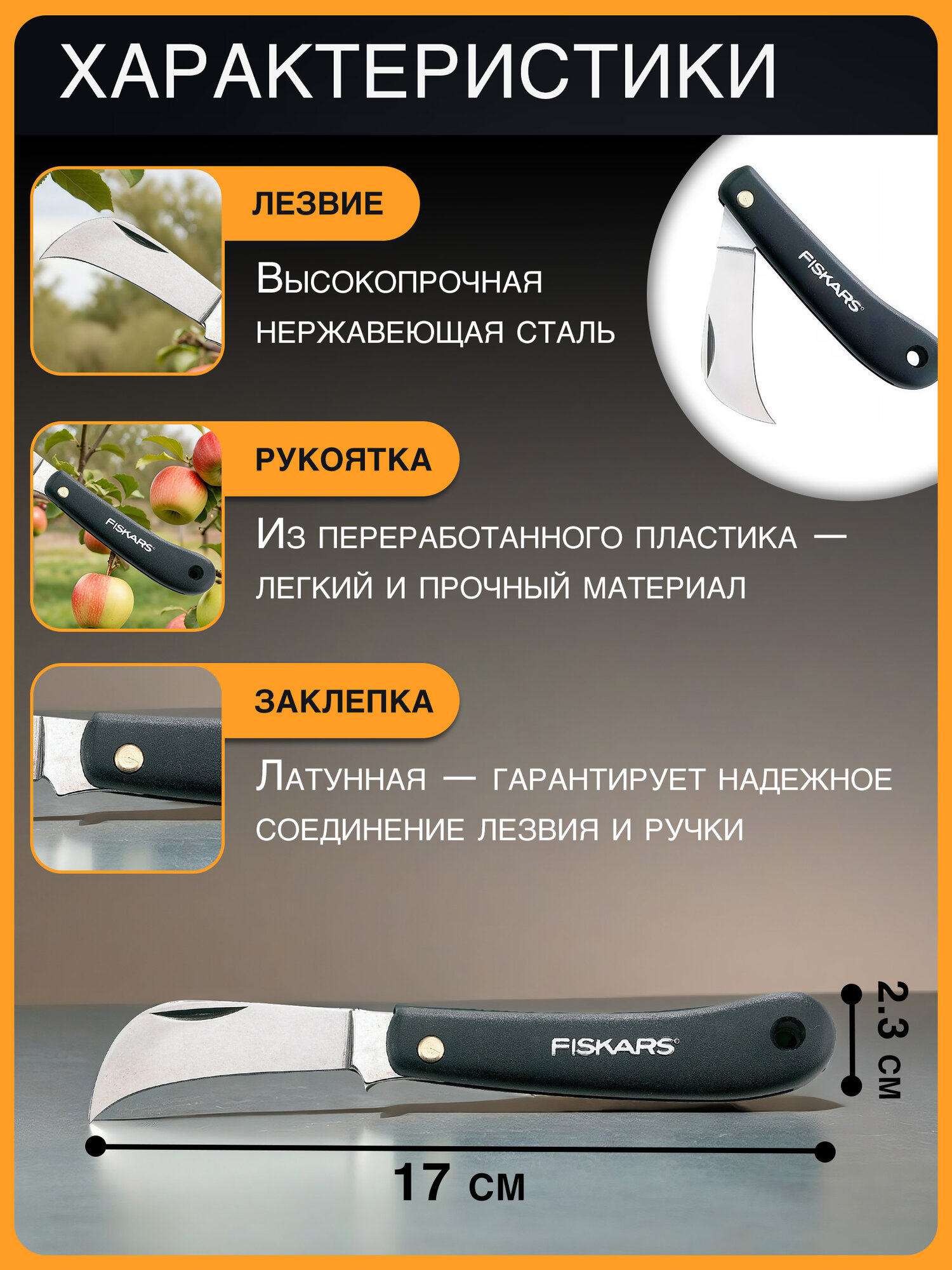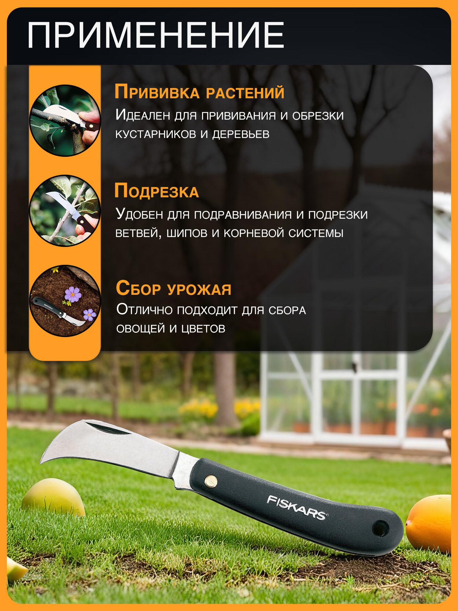 Нож садовый складной прививочный FISKARS K62, изогнутый, для сбора цветов и овощей, длина 17 см: сравнение цен, характеристики, фото, актуальное наличие и цены.