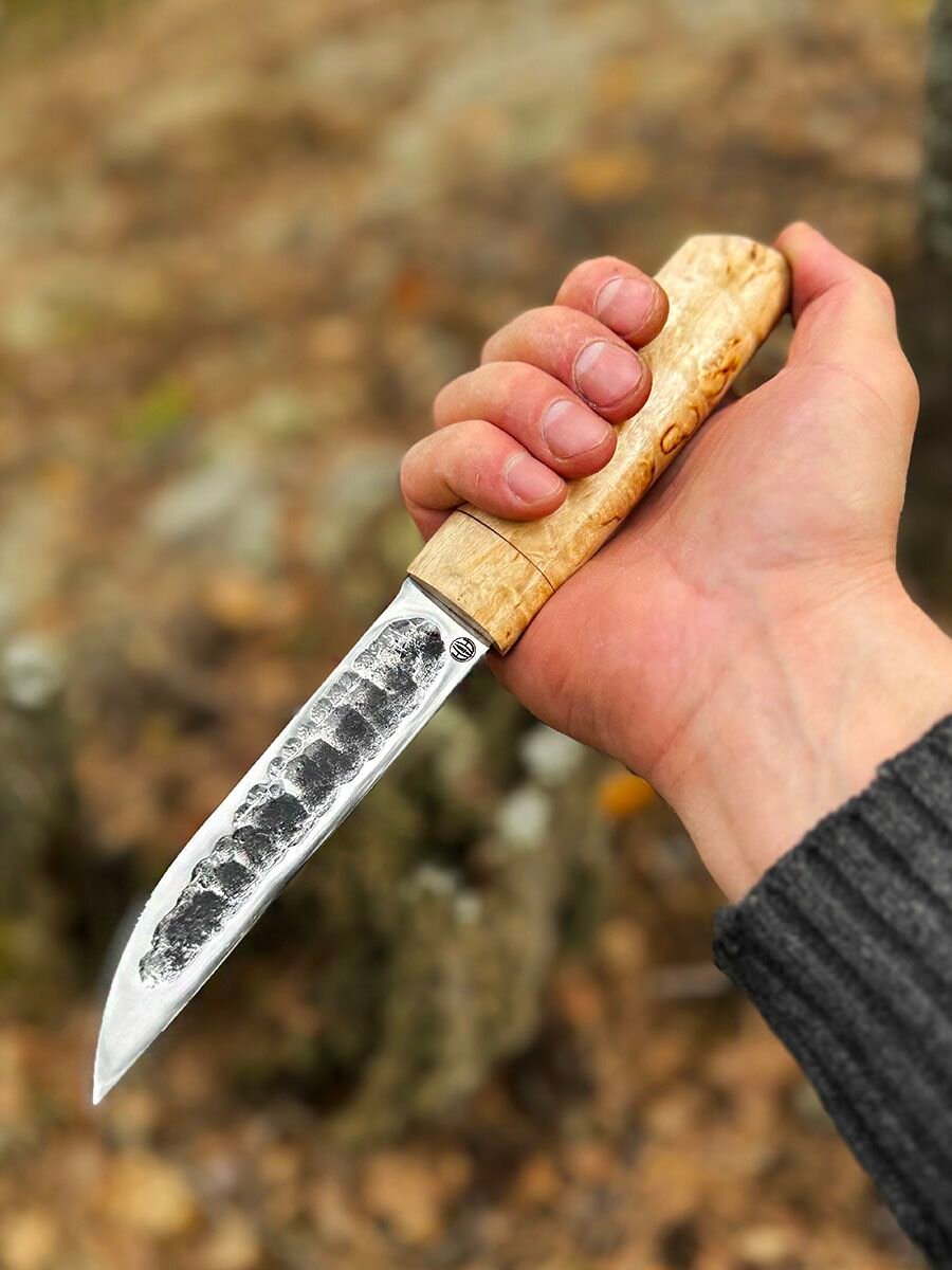 Купить Нож Северный-130 из стали Х12МФ, рукоять карельская берёза, длина клинка 130 мм с доставкой по всей России.