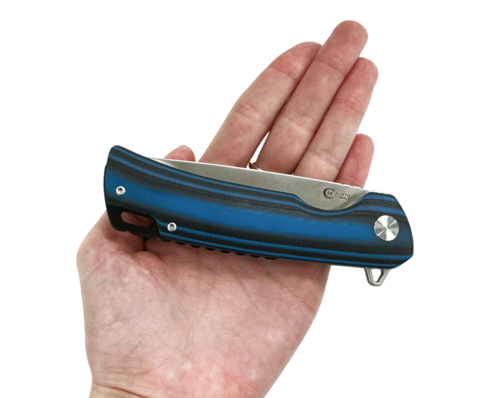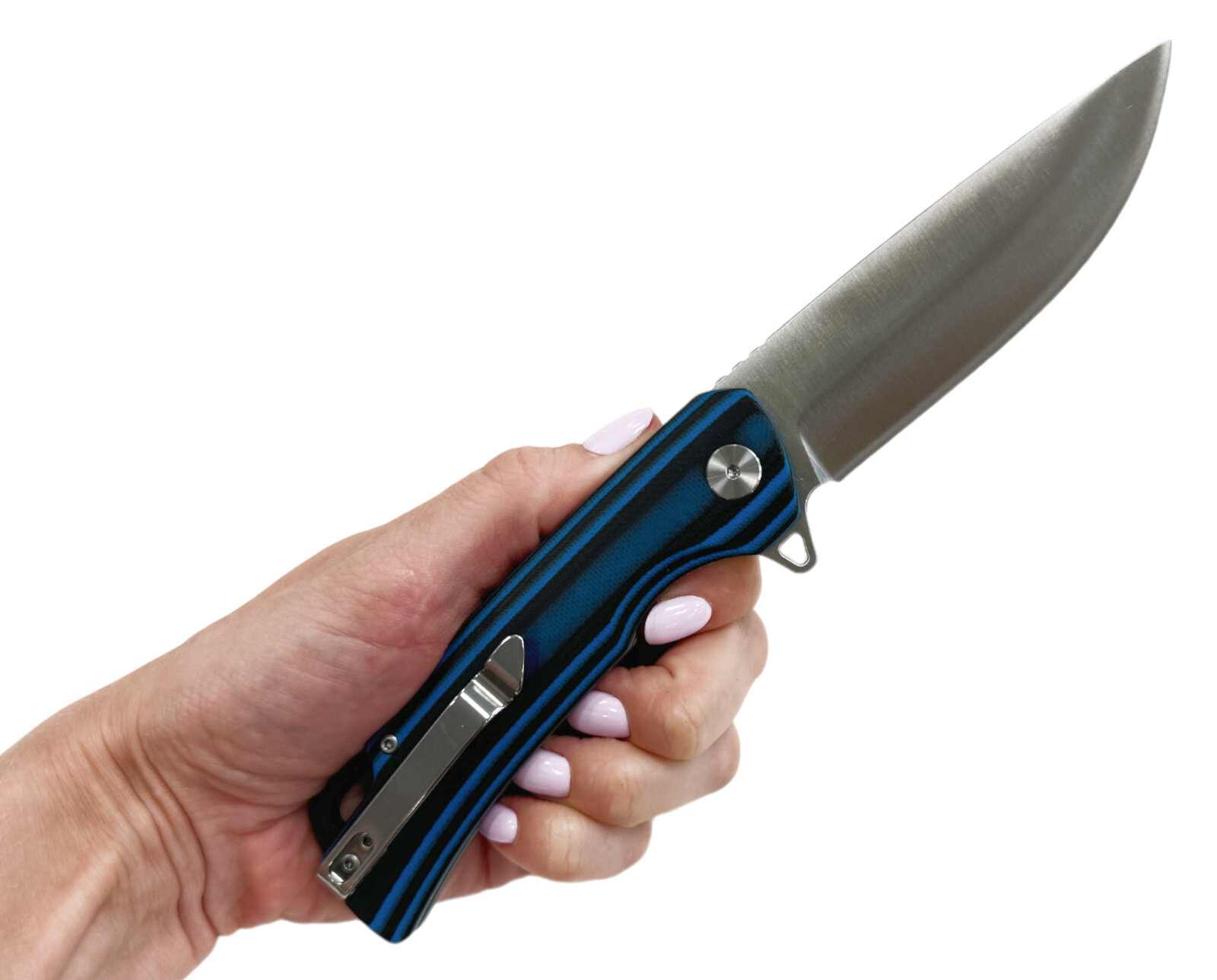 Нож складной Аляска (техно), сталь AUS10 Co, рукоять G10 черно-синяя, конвекс