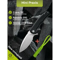 Mini Praxis — складной небольшой карманный EDC нож от компании CIVIVI. Относится к не особо дороким, околобюджетным ножам. Клинок ножа выполнен из стали D2. Раскрытие клинка плавное, из-за установленного керамического шарикоподшипника в механизме. Рукоять ножа стальная с накладкой из G10. Оснащён замком типа - Liner-Lock. Клипса типа Tip-Up из нержавеющей стали. Материал клинка D2 — это одна из самых популярных ножевых сталей в мире. Она содержит 12% хрома, что не позволяет называться нержавеющей, но все же она достаточно хорошо противодействует коррозии. Из положительных характеристик стоит так же отметить, что она хорошо держит режущую кромку острой и обладает неплохой ударной вязкостью. Рукоять выполнена из стеклотекстолита G10 — это композитный материал на основе стеклоткани и эпоксидной смолы. В процессе производства стекловолокно вымачивается в смолах, после чего подвергается сжатию. В результате получается материал, отлично показывающий себя при работе в неблагоприятных условиях. G10 прочен и ударостоек, отлично переносит влагу и хорошо поддаётся окраске. Внешне очень похож на микарту, но превосходит её в прочности и огнестойкости.