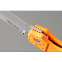 Double Safe Hunter — удобный и надежный складной нож от Cold Steel. Модель абсолютно универсальна и вы можете быть уверены, что нож справится с любой работой. Double Safe Hunter неприхотлив и выдержит использование в большинстве ситуаций, когда требуется устойчивость к силовой работе и ударам. Сталь клинка 8Cr13MoV — это весьма неплохой вариант для повседневных ножей. Сталь не выдает каких-то сверхъестественных показателей, но за свою цену показывает весьма недурные характеристики. Она неплохо сопротивляется коррозии, имеет неплохую износостойкость и рез, но все же уступает по этим показателям более дорогим сплавам. Рукоятка выполнена из термопластика GFN — это живучий материал, хорошо противостоит ударам и открытому огню. К минусам можно отнести слабую переносимость холодов — при температуре ниже 17 градусов, ударная прочность может снизиться. С остальном же этот материал, оправдывает свою стоимость. Длина ножа: 215 мм Длина клинка: 95 мм Длина рукояти: 120 мм Ширина клинка: 30 мм Толщина обуха: 3 мм Материал клинка: 8Cr13MoV Материал рукояти: GFN Производство: Cold Steel Вес: 114 гр