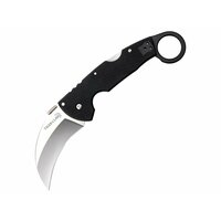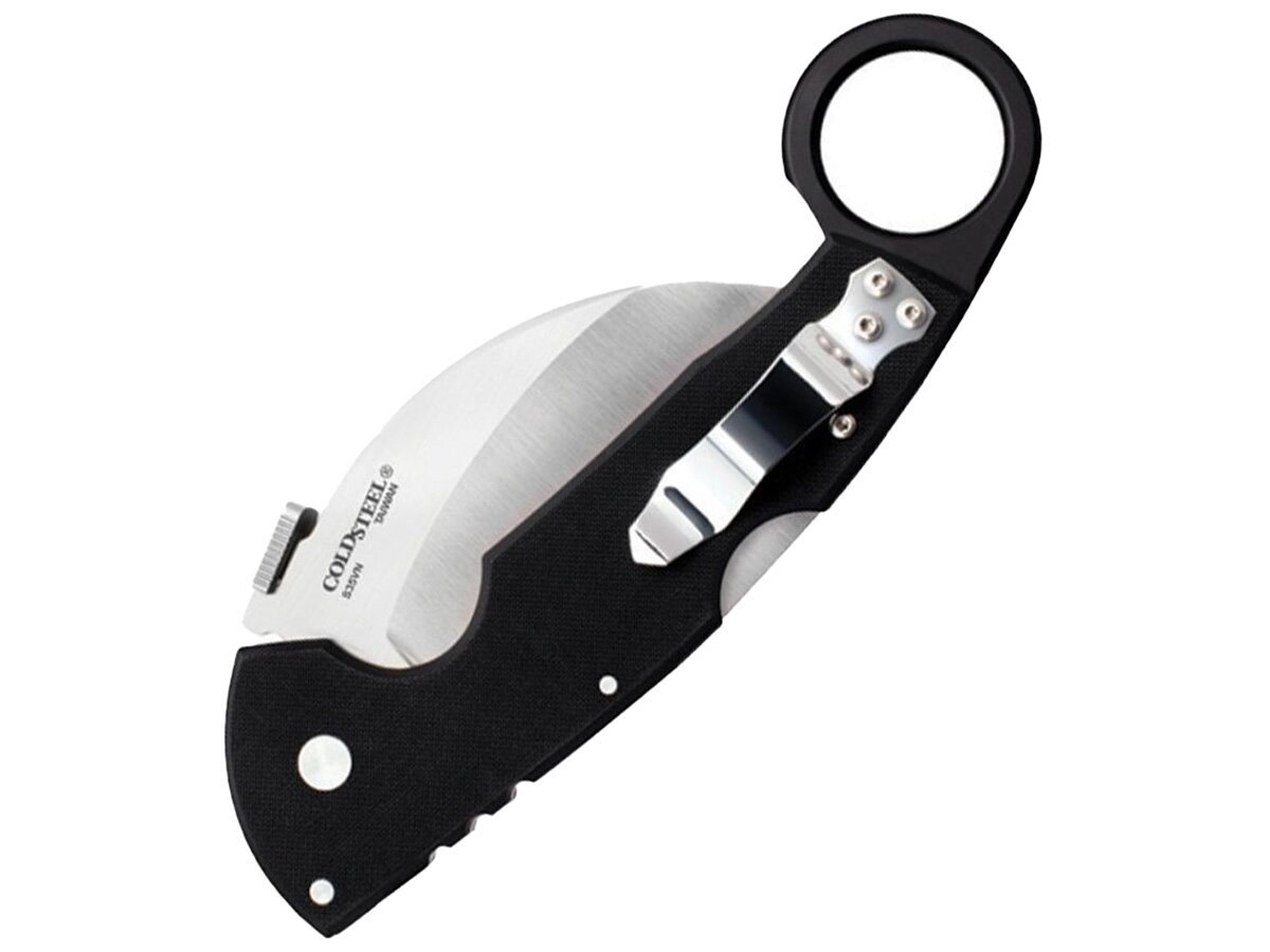 Нож складной Cold Steel Tiger Claw, сталь CPM S35VN, рукоять G10 Нож складной Cold Steel Tiger Claw, сталь CPM S35VN, рукоять G10Складной нож Cold Steel Tiger Claw – вещь для настоящих ценителей. Клинок гибридный, имеет собственную форму Керамбит/Hawkbill. Выполнен из порошковой стали S35VN, стойкой к выкрашиванию, устойчивой к износу и долго сохраняющей остроту режущей кромки. Клинок обладает выдающейся прочностью, стойкостью к выкрашиванию и сохраняет остроту режущей кромки даже при интенсивном использовании. Острота и форма лезвия обеспечивают высокую проникающую способность, что делает Tiger Claw отличным инструментом как для спасательных операций, так и для тактического применения. Рукоять из G10 с матовым алюминиевым кольцом была тщательно продумана для надёжного удержания и комфорта. Кольцо на рукояти позволяет быстро извлекать нож и удобно удерживать его обратным хватом. Клипса на рукояти переставляется, что позволяет настроить нож под правую или левую руку, обеспечивая удобство при ношении. Запатентованная пластина на рукояти, разработанная Демко, позволяет открывать нож одним движением с помощью большого пальца или при извлечении из кармана, что обеспечивает молниеносный доступ. Надёжный замок Tri-Ad Lock гарантирует фиксацию клинка, выдерживая значительные ударные нагрузки и исключая люфт, что делает нож безопасным и долговечным. Характеристики Cold Steel Tiger Claw: Длина ножа: 229 ммДлина клинка: 89 ммТолщина клинка: 3,5 ммТип замка: Tri-Ad LockМатериал клинка: сталь S35VNДлина рукояти: 152 ммМасса: 145 гДополнительные функции: переставляемая клипса для кармана/поясаТип ножа: складнойФорма клинка: Karambit / Hawkbill