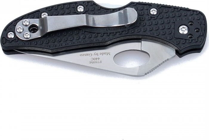 Рукоятка полностью вписывается в общий энергичный дизайн. Она сформирована при помощи двух накладок из армированного стекловолокном нейлона, который пятью болтами прикручены к стальной базе. Также на ручке ножа есть металлическая клипса, положение которой пользователь может менять. Цвет покупатели выбирают из четырех вариантов: черный, голубой, розовый, оранжевый.