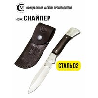 Купить Нож складной из стали D2 Снайпер, рукоять чёрный граб, ножны кожа с доставкой по всей России.