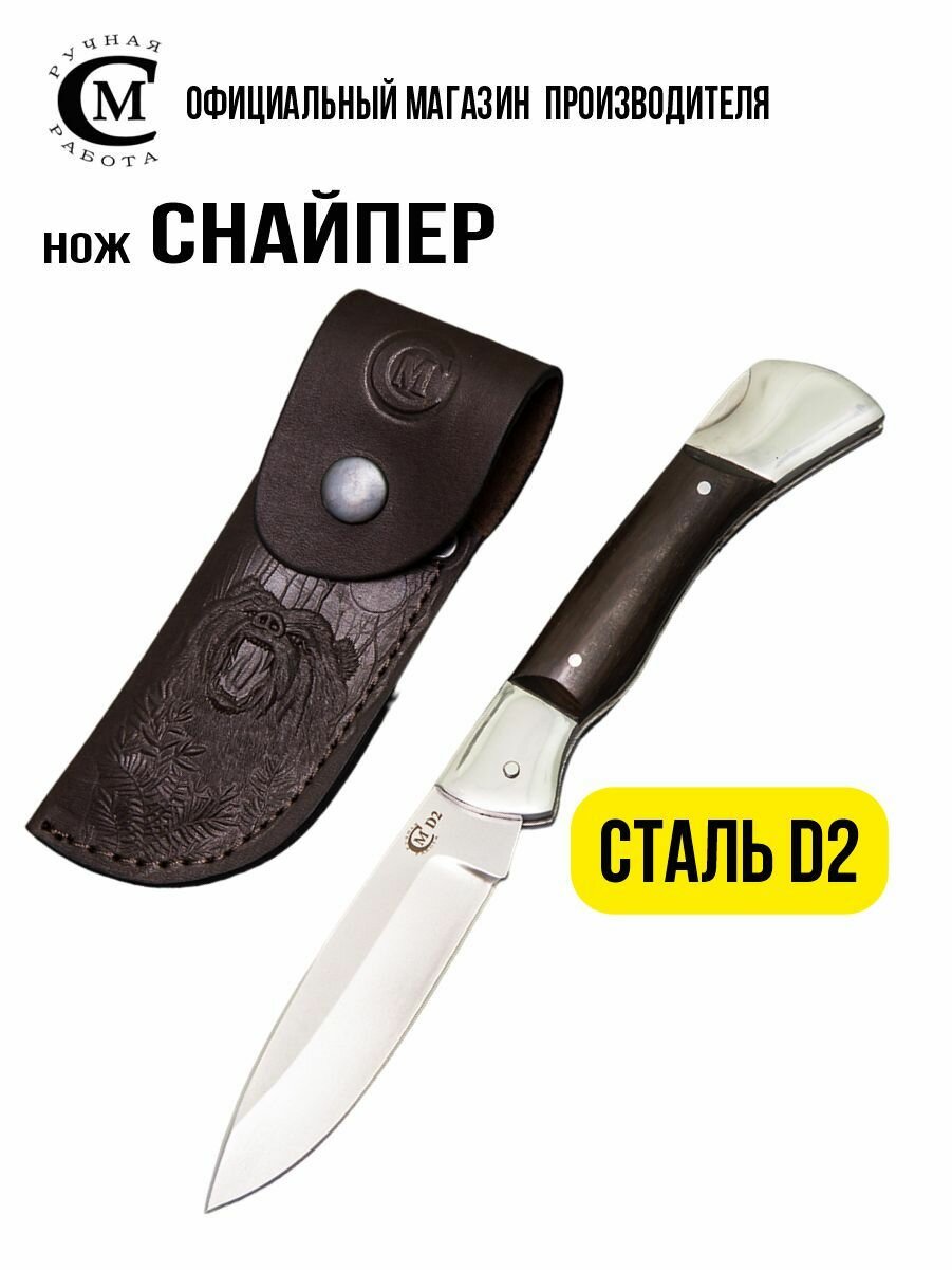 Нож складной из стали D2 Снайпер, рукоять чёрный граб, ножны кожа: сравнение цен, характеристики, фото, актуальное наличие и цены.