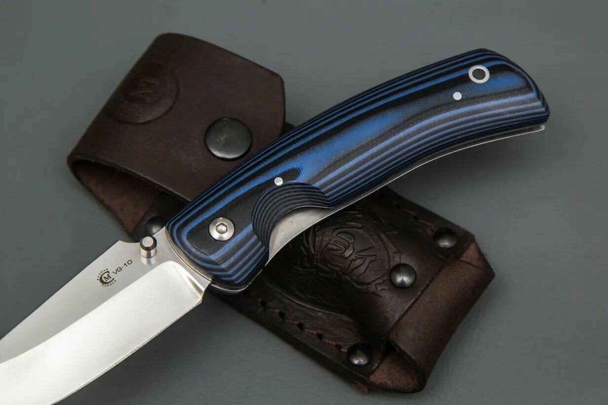 Купить Нож складной из стали VG-10 Аляска, рукоять пластик G10 (цвет синий). Ножны из натуральной кожи. Официальный магазин производителя Мастерская Сёмина с доставкой по всей России.
