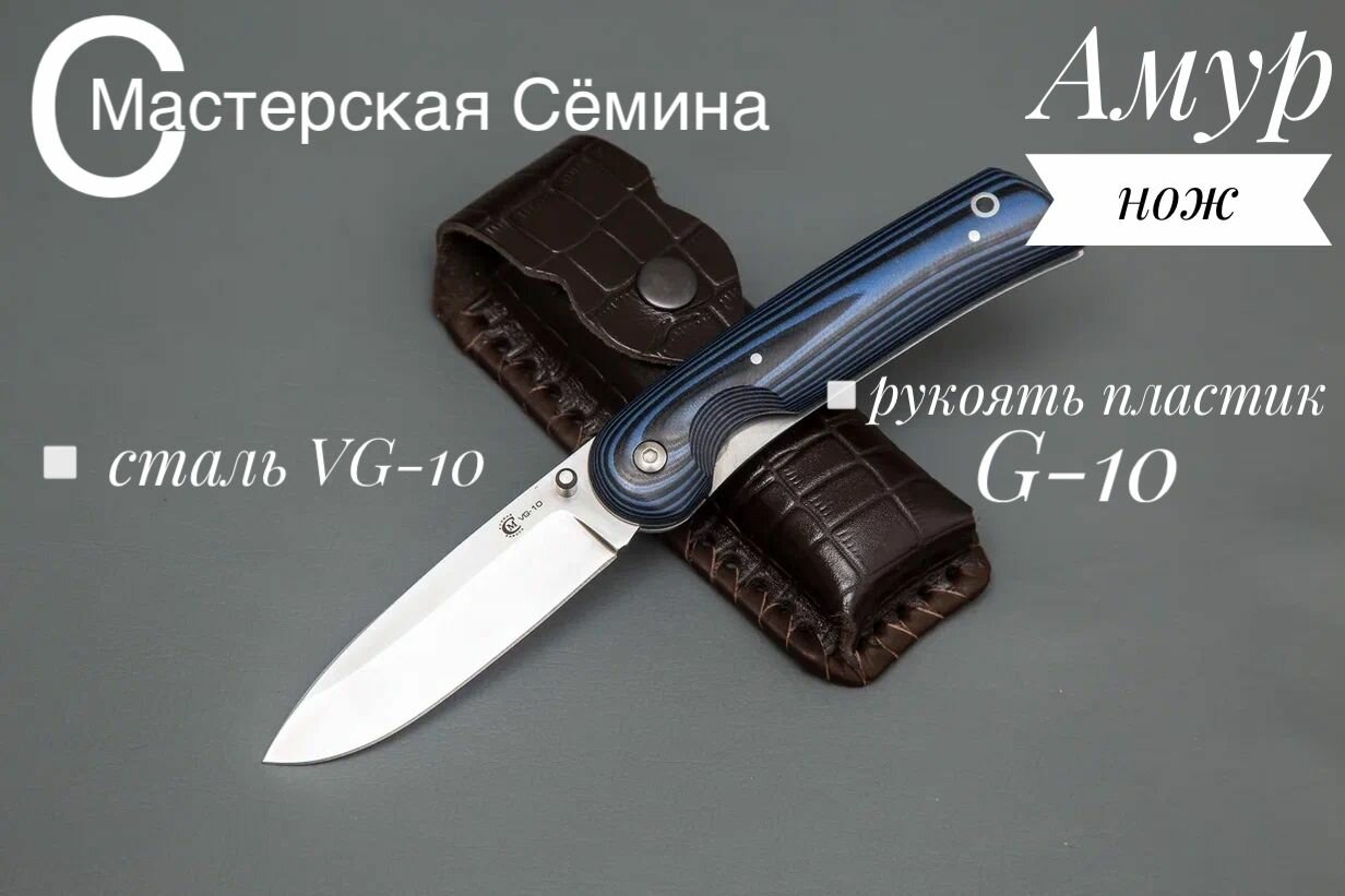 Нож складной из стали VG-10 Амур, рукоять пластик G10 (цвет синий). Ножны из натуральной кожи. Официальный магазин производителя Мастерская Сёмина: сравнение цен, характеристики, фото, актуальное наличие и цены.
