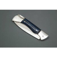 Купить Нож складной из стали VG-10 Снайпер, рукоять пластик G10 (цвет синий). Ножны из натуральной кожи. Официальный магазин производителя Мастерская Сёмина с доставкой по всей России.