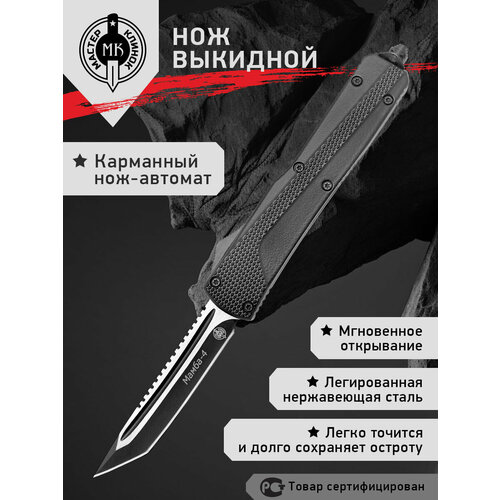 не относится к холодному оружию; марка стали: 420; твердость стали, HRC: 54-56; тип замка: Out-the-Front Double Auto; длина сложенного: 120.4 мм; чехол в комплекте; вид клинка: Tanto; заточка: прямая; тип замка: Out-the-Front Double Auto
