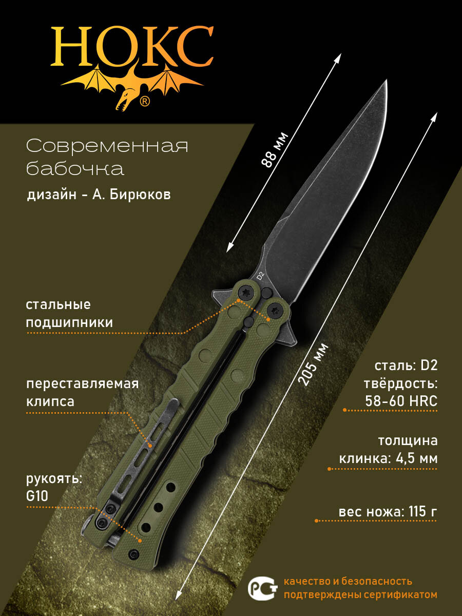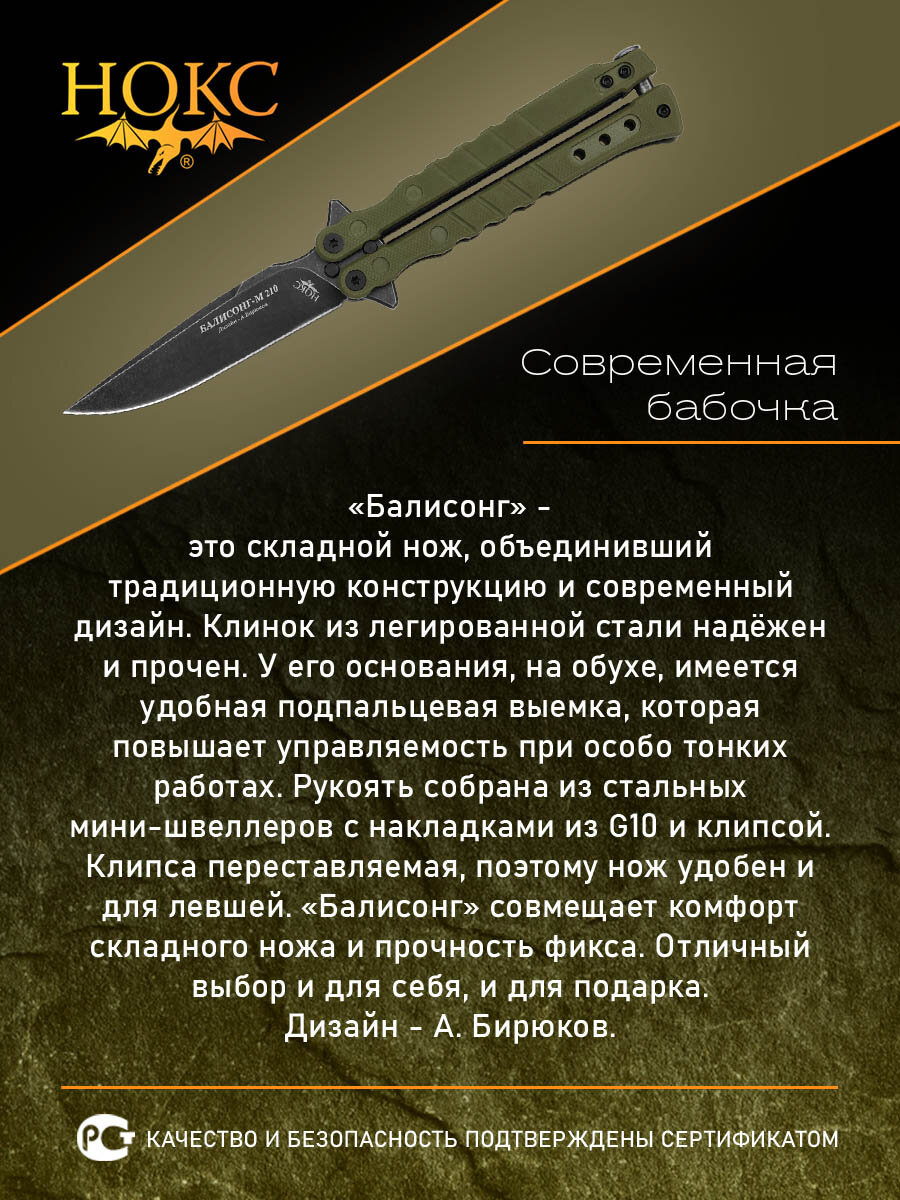 Нож складной НОКС Балисонг-210 (210-509401), сталь D2, темное покрытие black stone-wash: сравнение цен, характеристики, фото, актуальное наличие и цены.