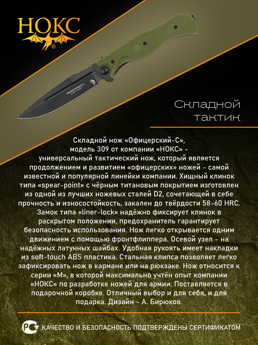 Нож складной НОКС офицерский-с (309-709975), сталь D2, рукоять ABS пластик: сравнение цен, характеристики, фото, актуальное наличие и цены.