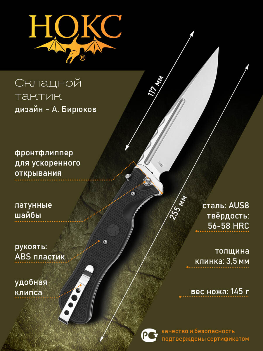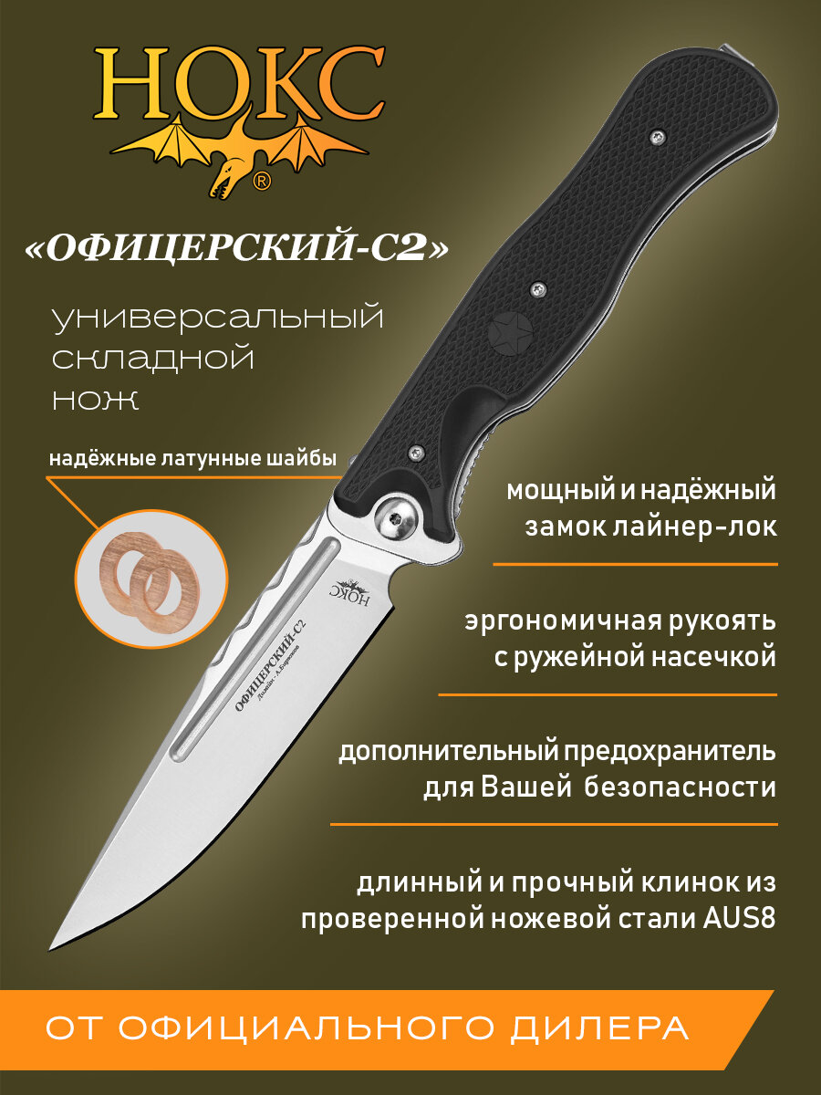 Купить Нож складной НОКС ОФИЦЕРСКИЙ-С2 (309-180985), сталь AUS8, рукоять ABS пластик с доставкой по всей России.