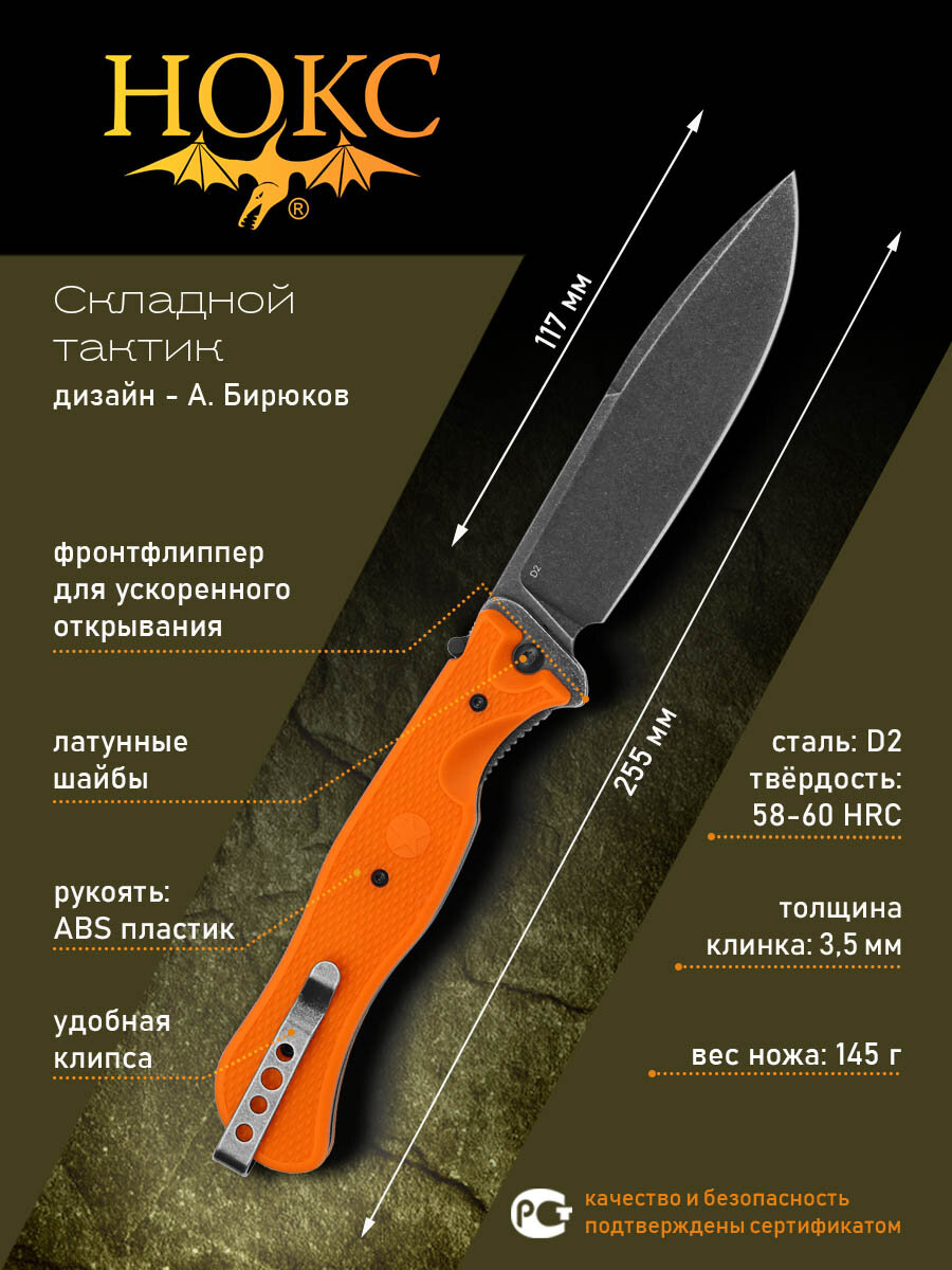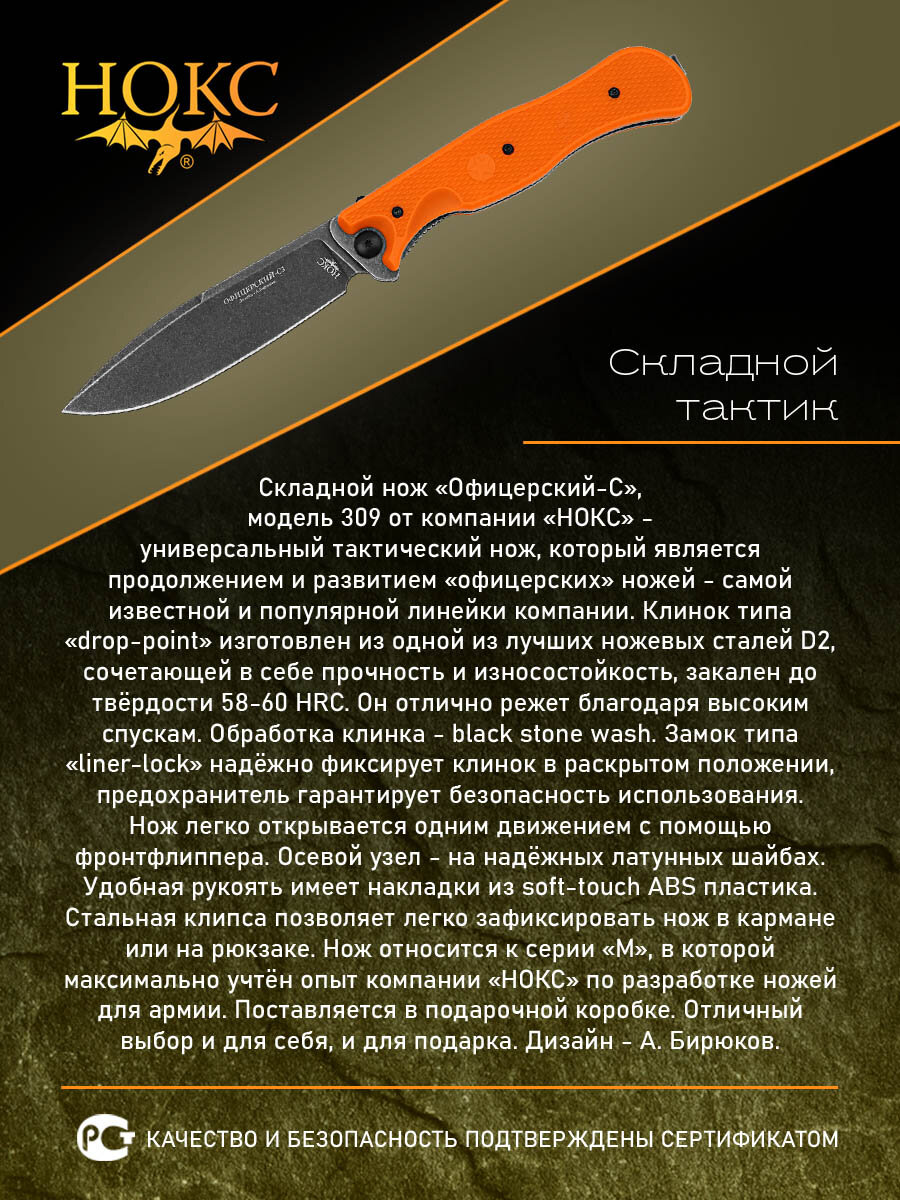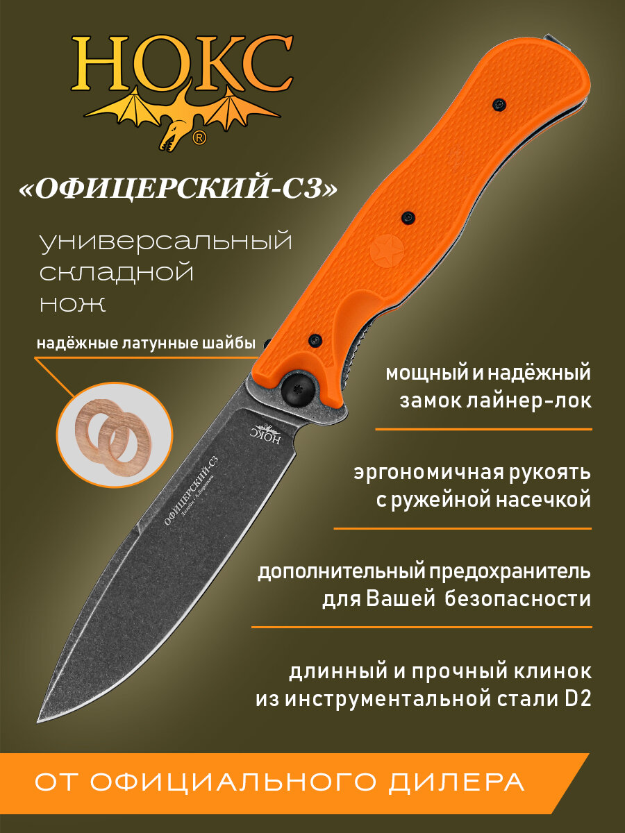 Купить Нож складной НОКС ОФИЦЕРСКИЙ-С3 (309-508995), сталь D2, рукоять ABS пластик с доставкой по всей России.