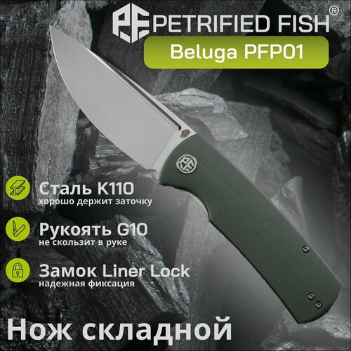 Купить Складной нож Petrified Fish Beluga PFP01 PFP01GR, сталь K110, рукоять Green G10 с доставкой по всей России. Складной нож Petrified Fish Beluga PFP01 PFP01GR, сталь K110, рукоять Green G10: сравнение цен, характеристики, фото, актуальное наличие и цены.