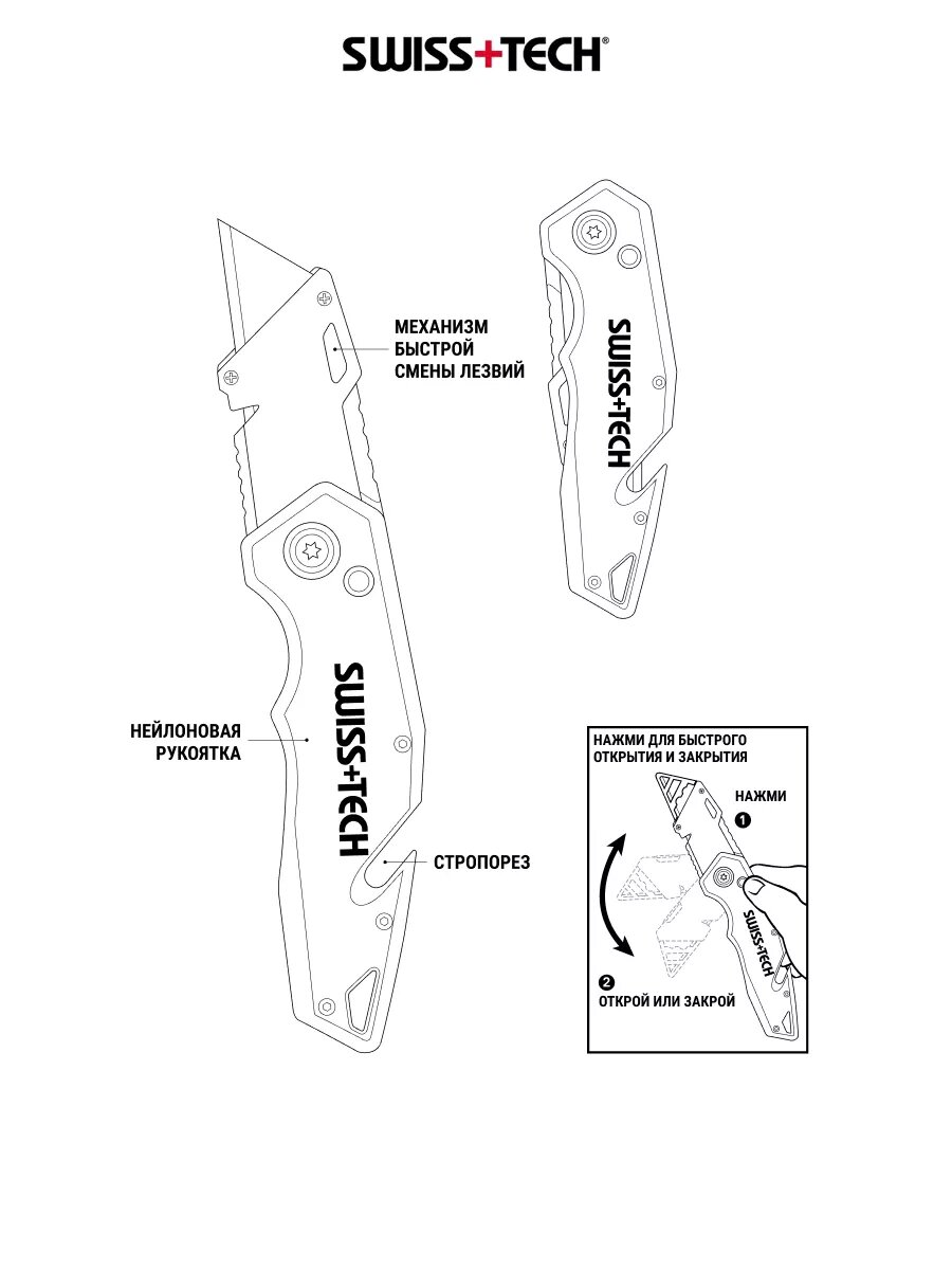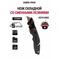 Нож складной со сменными лезвиями ST015002 от SWISS+TECH - это надежный и функциональный инструмент, который станет незаменимым помощником в любых условиях.
