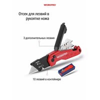 Купить Нож складной строительный WORKPRO WP211026, с отсеком для запасных лезвий с доставкой по всей России. Нож складной строительный WORKPRO WP211026, с отсеком для запасных лезвий: сравнение цен, характеристики, фото, актуальное наличие и цены.