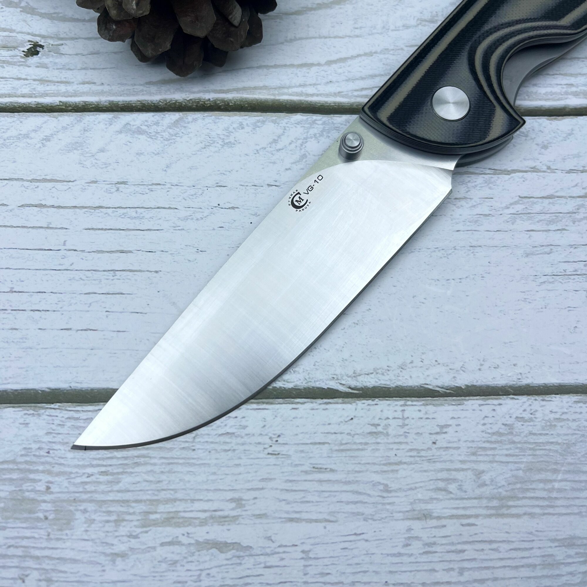 Нож складной VG-10 Сибиряк рукоять G10 (черно-серая). Ножны из натуральной кожи. Официальный магазин производителя Мастерская Сёмина: сравнение цен, характеристики, фото, актуальное наличие и цены.