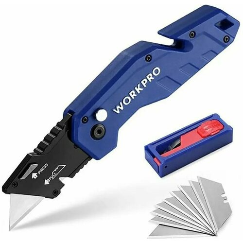 Цвет черный! Нож универсальный, складной Фиксатор с кнопкой Быстрое открытие ножа Быстрая смена лезвия Резак для шпагата Ребристый упор для большого пальца Нейлоновая рукоятка 10 сменных лезвий WP213001 в комплекте адной WORKPRO WP211018 - 1шт, лезвия WP213001 - 10шт.