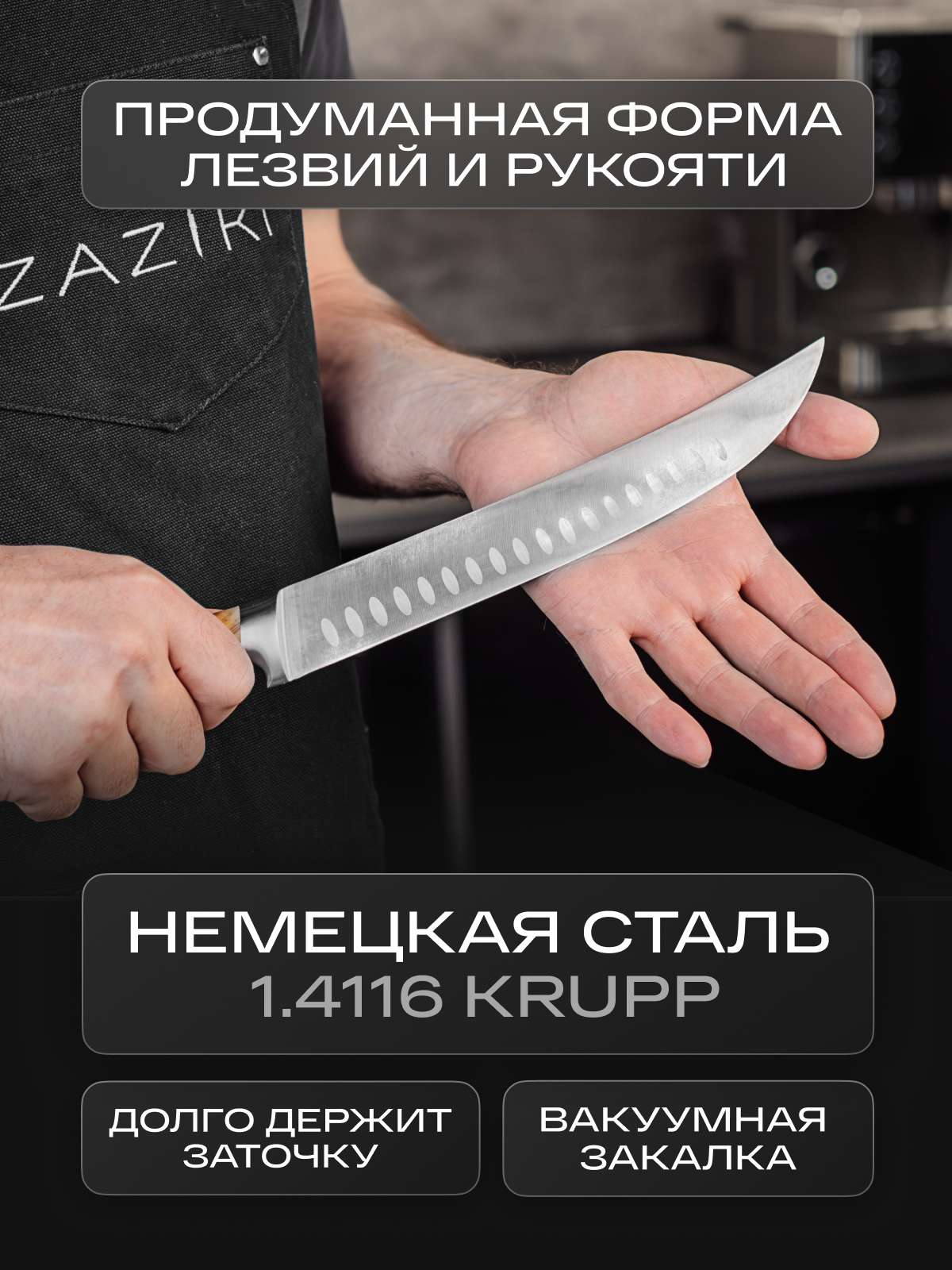 Нож слайсер кухонный Zaziki для тонкой нарезки мяса и овощей, нержавеющая сталь: сравнение цен, характеристики, фото, актуальное наличие и цены.