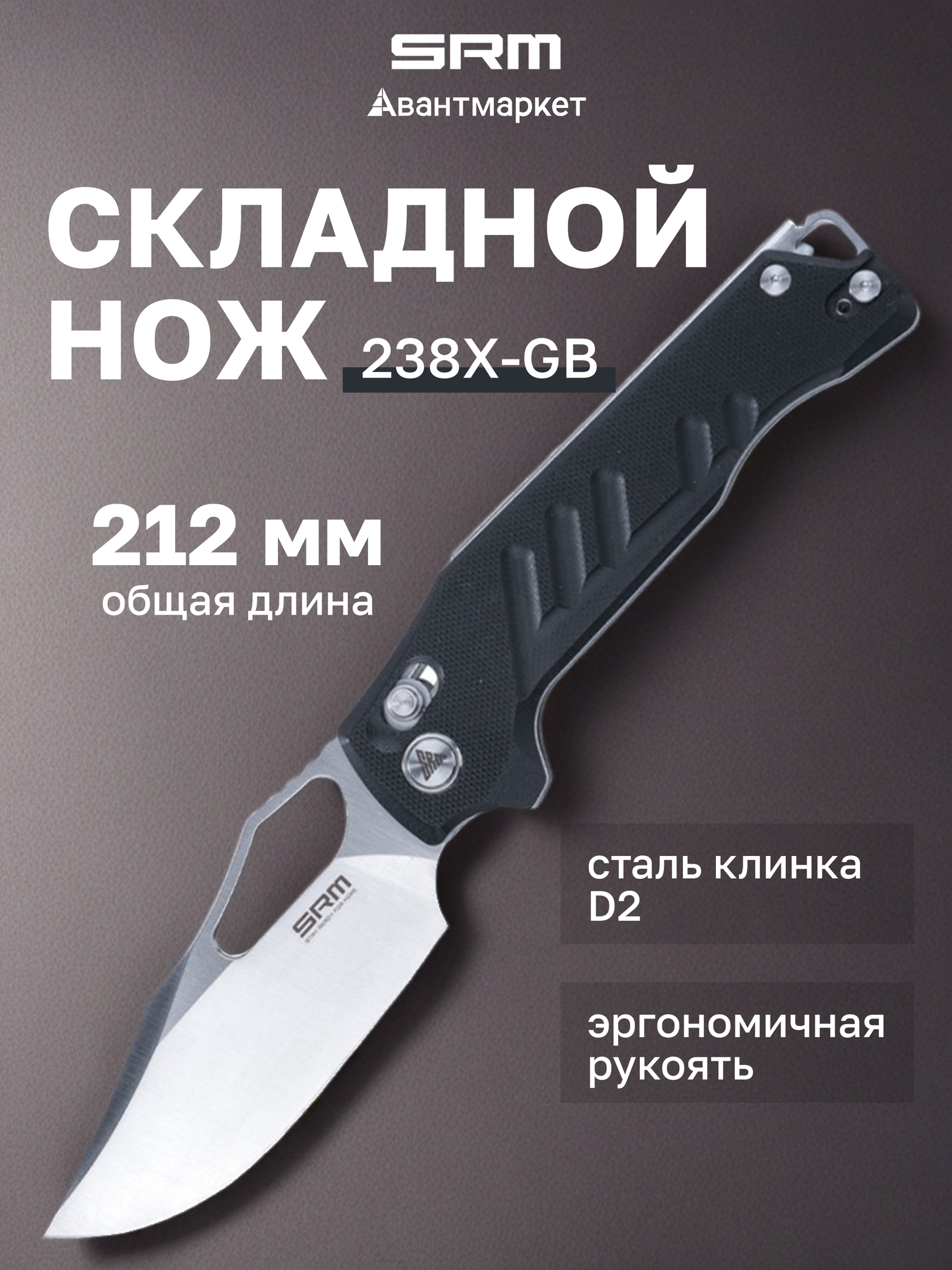 Нож SRM 238X-GB, складной, сталь D2, толщина 3 мм, длина лезвия 92мм, рукоять G10: сравнение цен, характеристики, фото, актуальное наличие и цены.