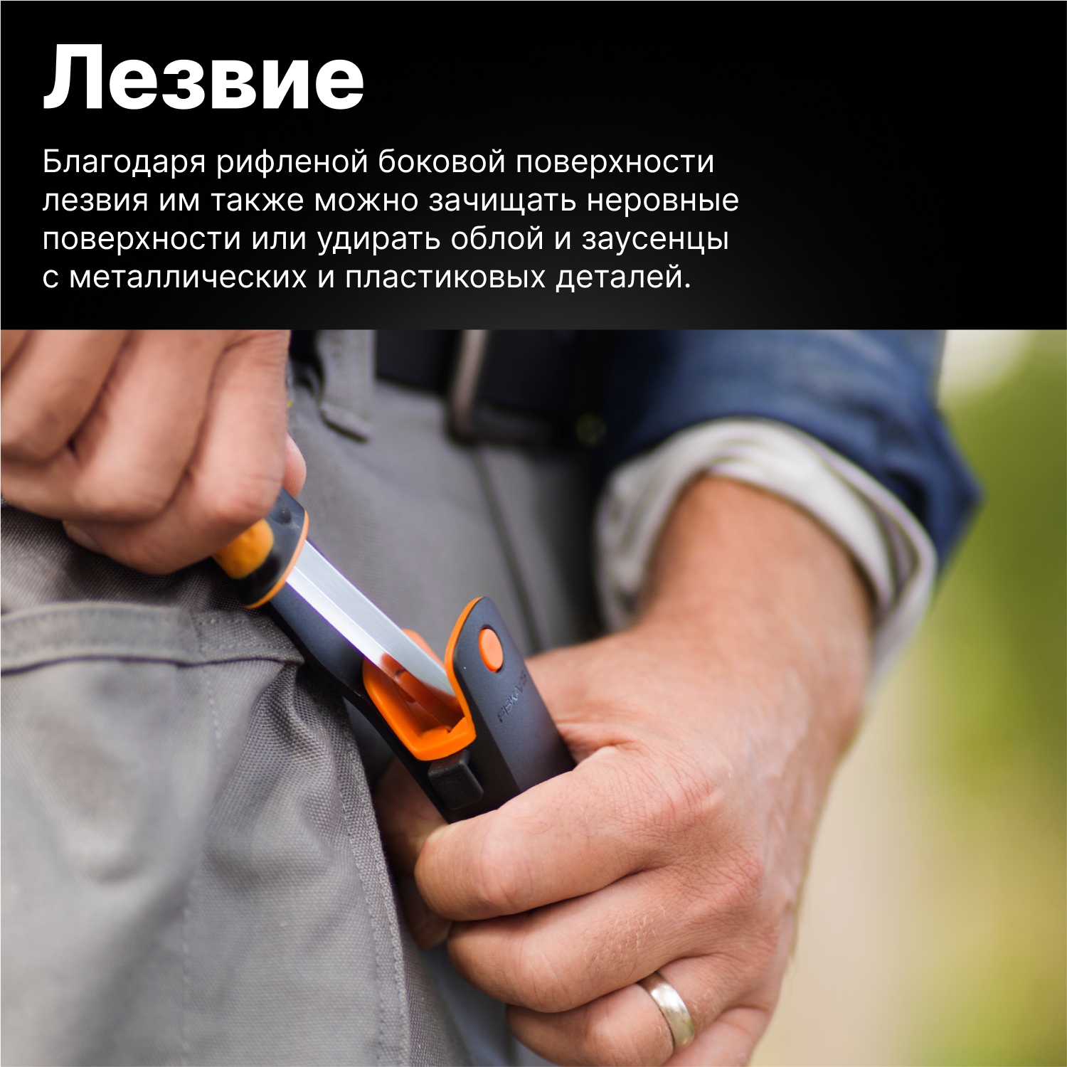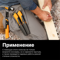 Нож общего назначения FISKARS с точилкой (1023618) - это профессиональный инструмент, который подойдет для широкого спектра работ в саду и на приусадебном участке.