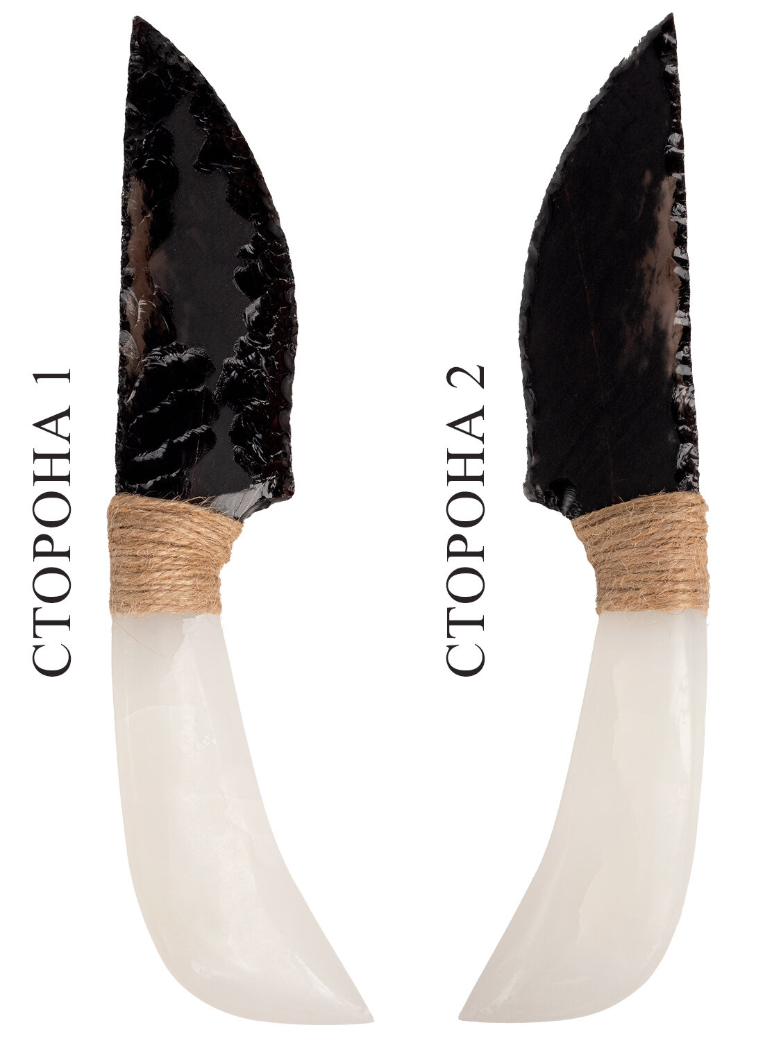 Внимание: Ножи сувенирные, и не предназначены для бытового использования, т. к. Обсидиан это камень, который ломается и стачивается. По остроте ножи больше как пила с зубьями, которыми можно что-то надрезать или поцарапать, но конечно не такие острые как кухонный нож.