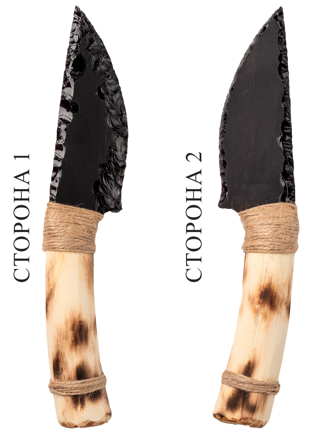 Внимание: Ножи сувенирные, и не предназначены для бытового использования, т.к. Обсидиан это камень, который ломается и стачивается. По остроте ножи больше как пила с зубьями, которыми можно что-то надрезать или поцарапать, но конечно не такие острые как кухонный нож.