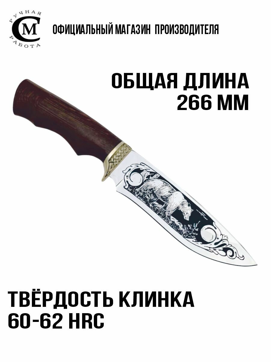 Нож туристический Мастерская Сёмина «Близнец» сталь 95Х18, гравировка, рукоять венге, ножны из натуральной кожи: сравнение цен, характеристики, фото, актуальное наличие и цены.