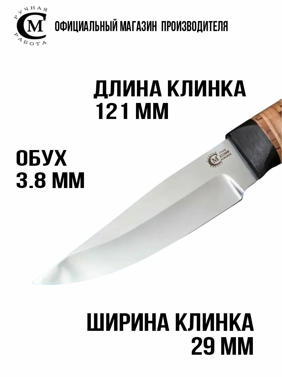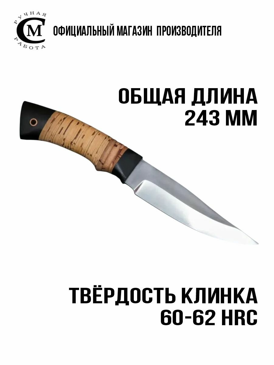 Нож туристический Мастерская Сёмина «Коршун» сталь Х12МФ, рукоять из бересты и чёрного граба, ножны из натуральной кожи: сравнение цен, характеристики, фото, актуальное наличие и цены.