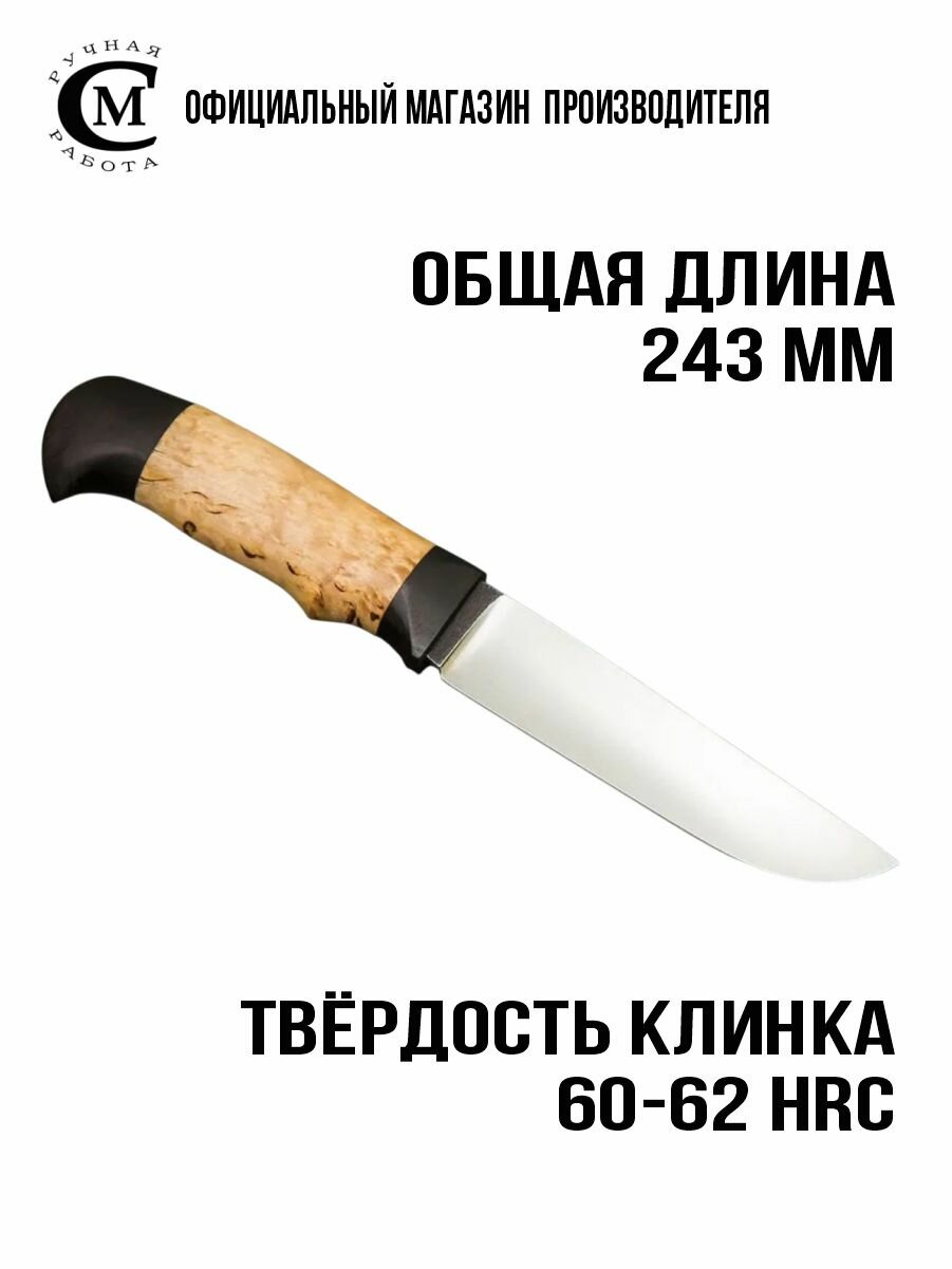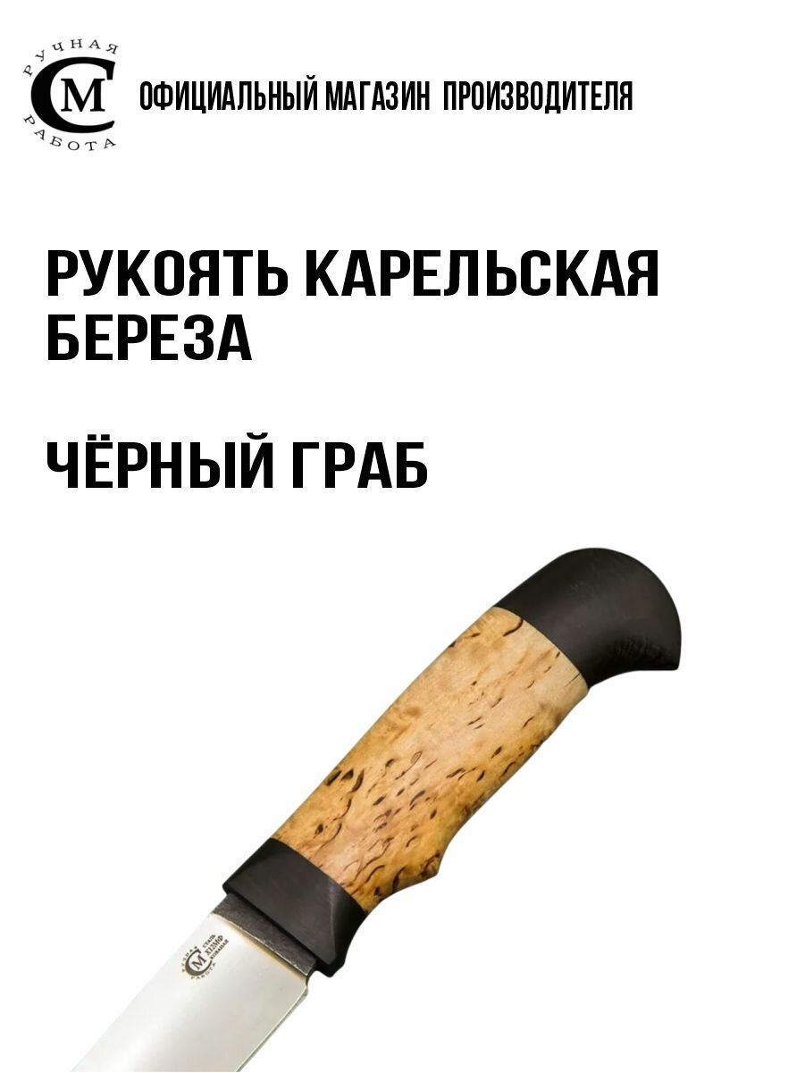 Нож туристический Мастерская Сёмина «Куница» сталь Х12МФ, рукоять карельская берёза, граб, ножны из натуральной кожи: сравнение цен, характеристики, фото, актуальное наличие и цены.