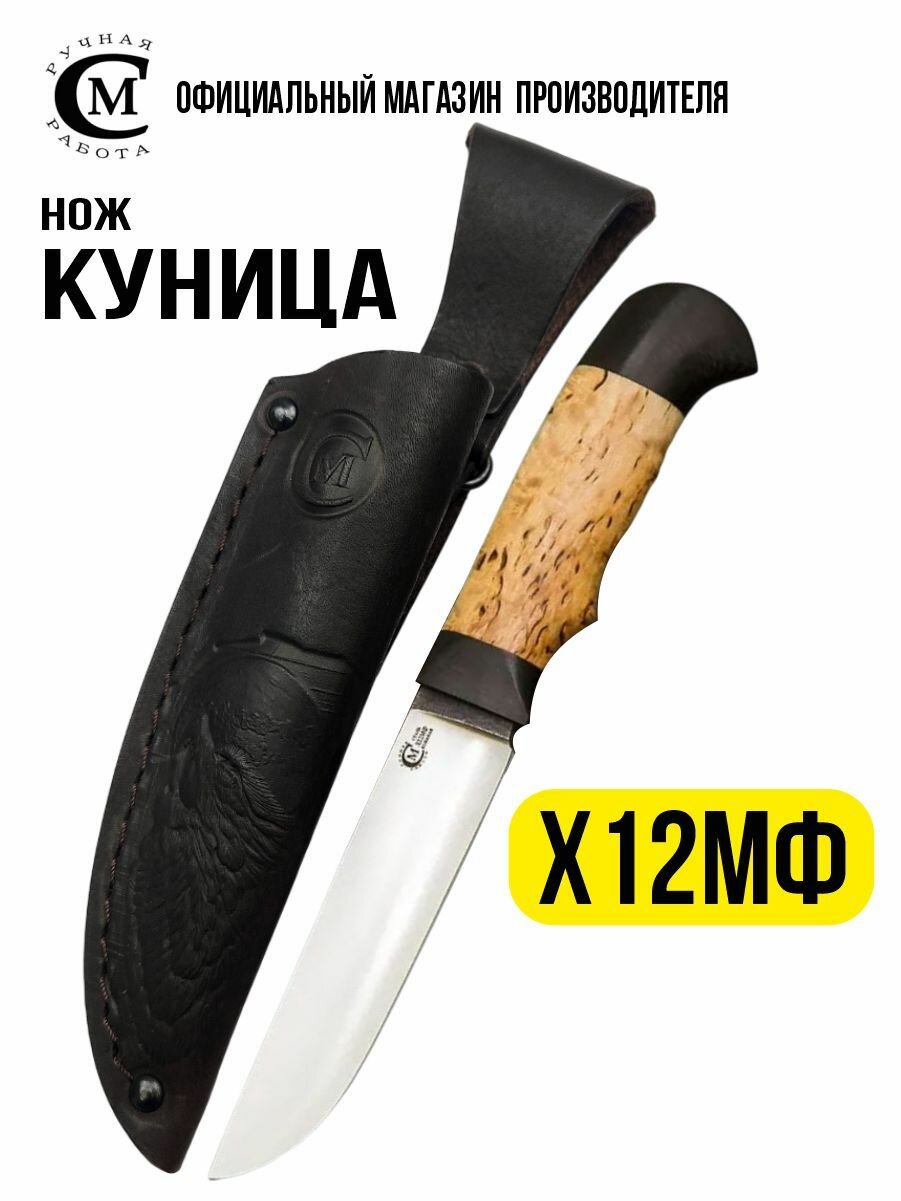 Нож из стали Х12МФ Куница, рукоять карельская берёза, граб, ножны кожа: сравнение цен, характеристики, фото, актуальное наличие и цены.
