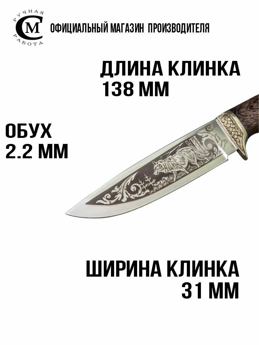 Нож туристический Мастерская Сёмина «Лазутчик» сталь 95Х18, гравировка, рукоять венге, ножны из натуральной кожи: сравнение цен, характеристики, фото, актуальное наличие и цены.