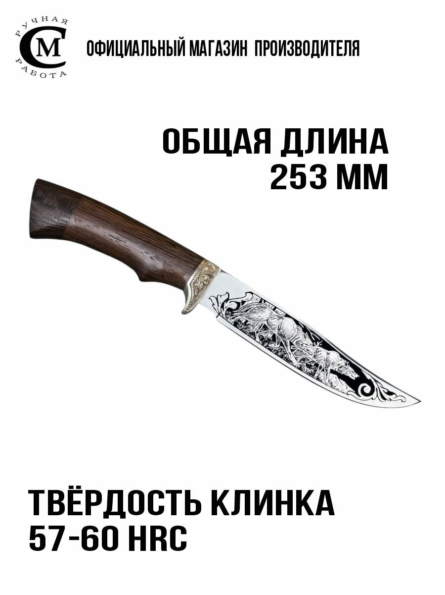 Нож туристический Мастерская Сёмина «Мангуст» сталь 95Х18, гравировка, рукоять венге, ножны из натуральной кожи: сравнение цен, характеристики, фото, актуальное наличие и цены.