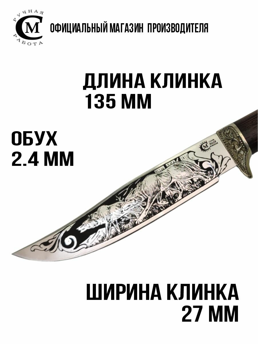 Купить Нож туристический Мастерская Сёмина «Мангуст» сталь 95Х18, гравировка, рукоять венге, ножны из натуральной кожи с доставкой по всей России.