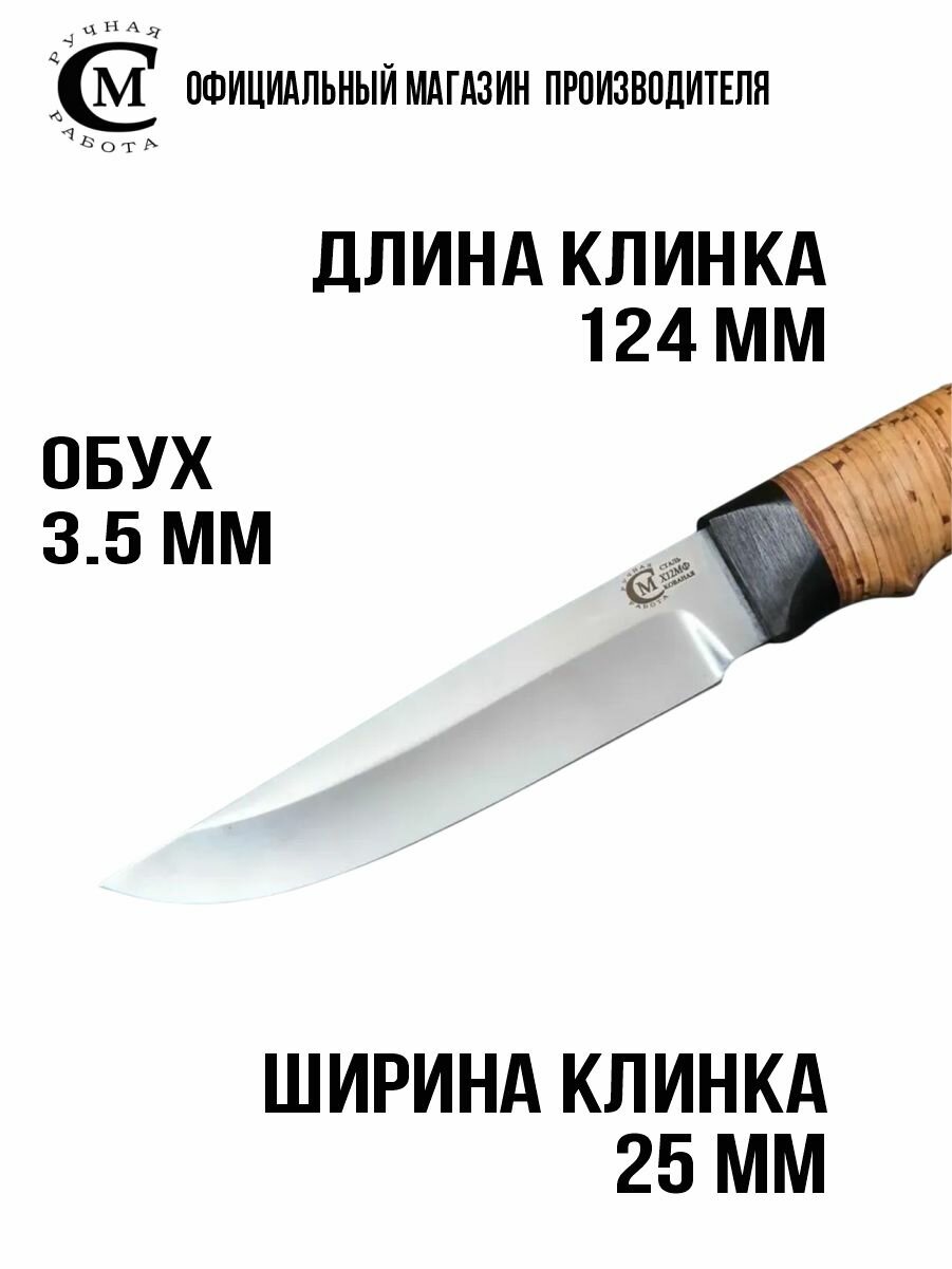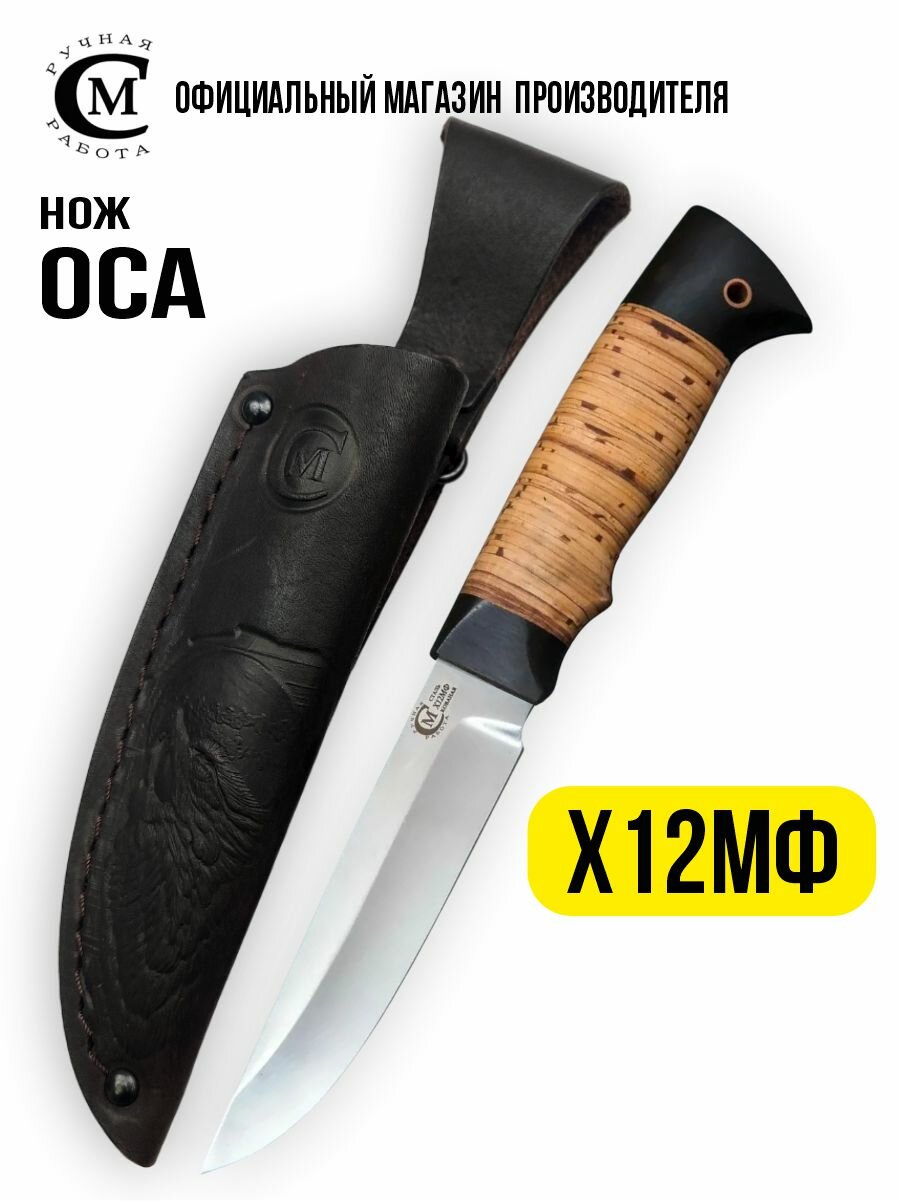 Нож туристический Мастерская Сёмина «Оса» сталь Х12МФ, рукоять из бересты и чёрного граба, ножны из натуральной кожи: сравнение цен, характеристики, фото, актуальное наличие и цены.