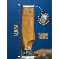 К оформлению ножа придаётся особое внимание: изящная рукоятка обеспечивает комфортный и надежный захват, даже если ваши руки влажные. Чехол ножны на пояс позволяет удобно носить изделие, обеспечивая быстрый доступ в любое время. Вы сможете быть уверены в том, что ваш инструмент всегда под рукой, когда это необходимо.