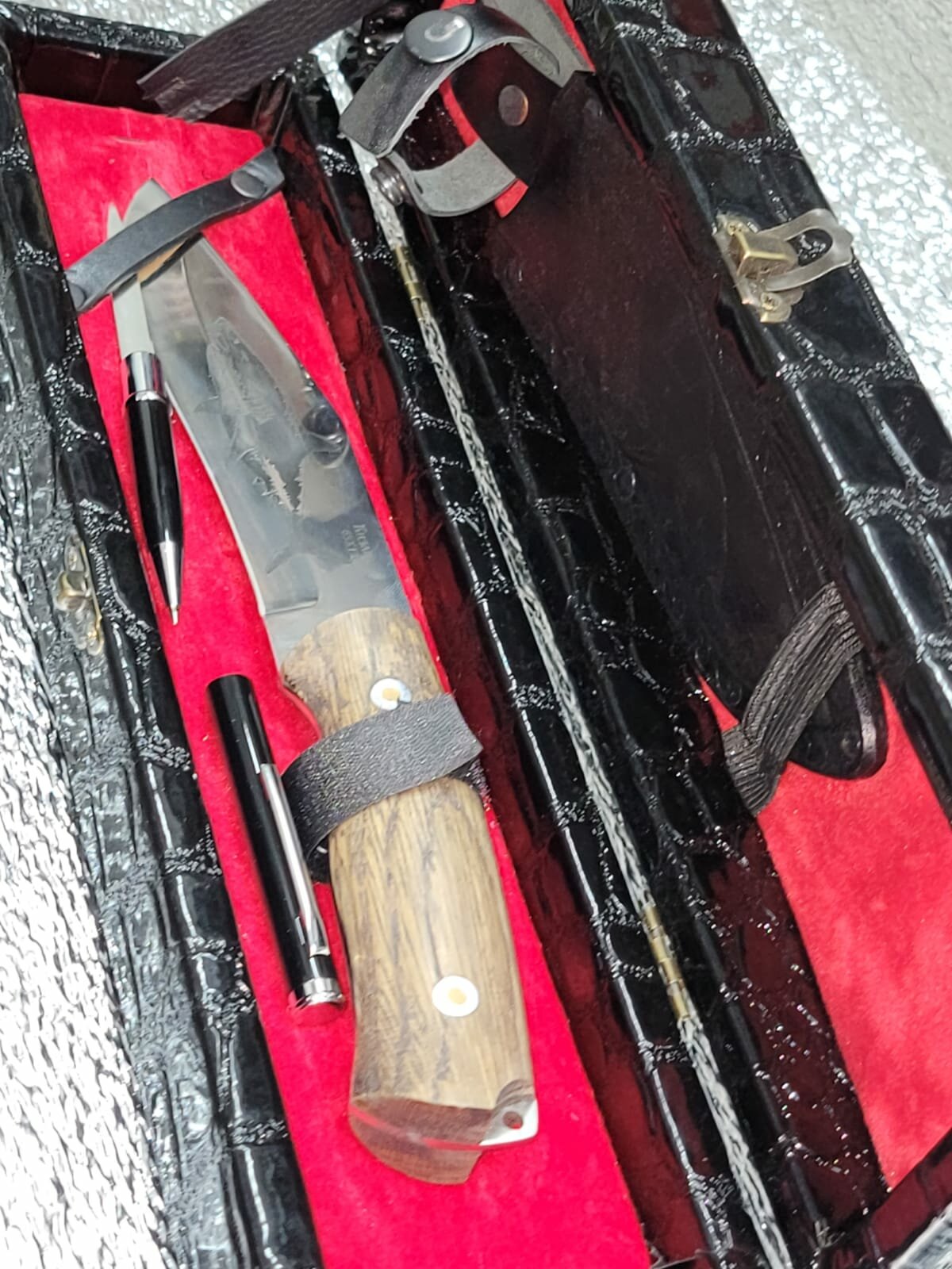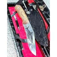 Купить Нож туристический разделочный Акула в чехле ножнах и подарочный черный кожаный футляр , ручка нож в подарок с доставкой по всей России.