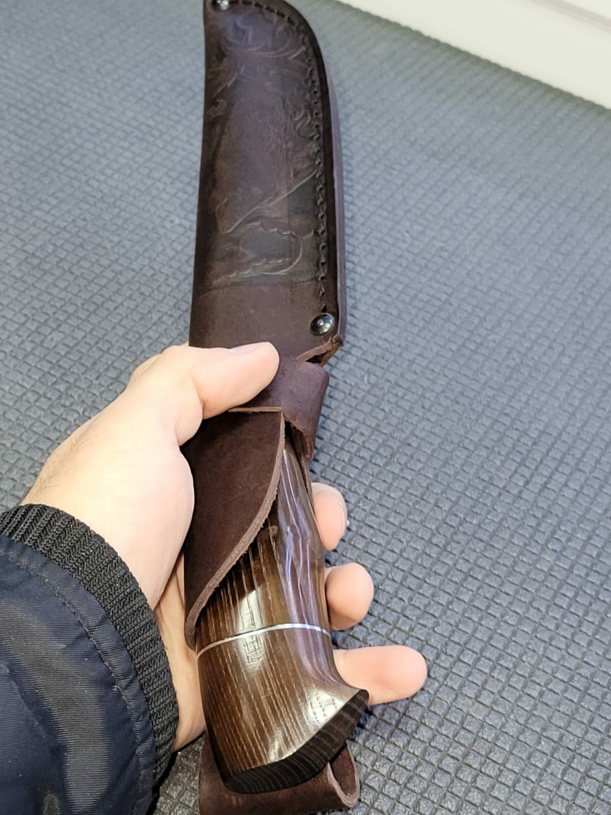 Купить Нож туристический разделочный , для рыбалки и охоты из Дамасской Стали в чехле ножнах ( высш. ручная ковка) с доставкой по всей России.