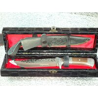 Купить Нож туристический разделочный , Охотник 4 в чехле ножнах и подарочный черный кожаный футляр , ручка нож в подарок с доставкой по всей России.
