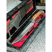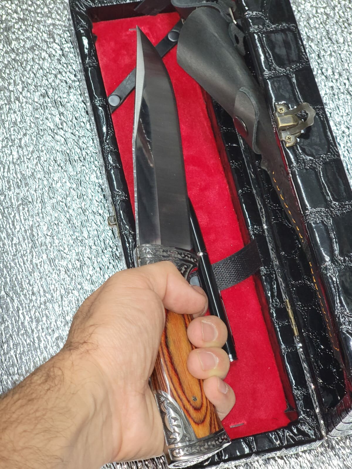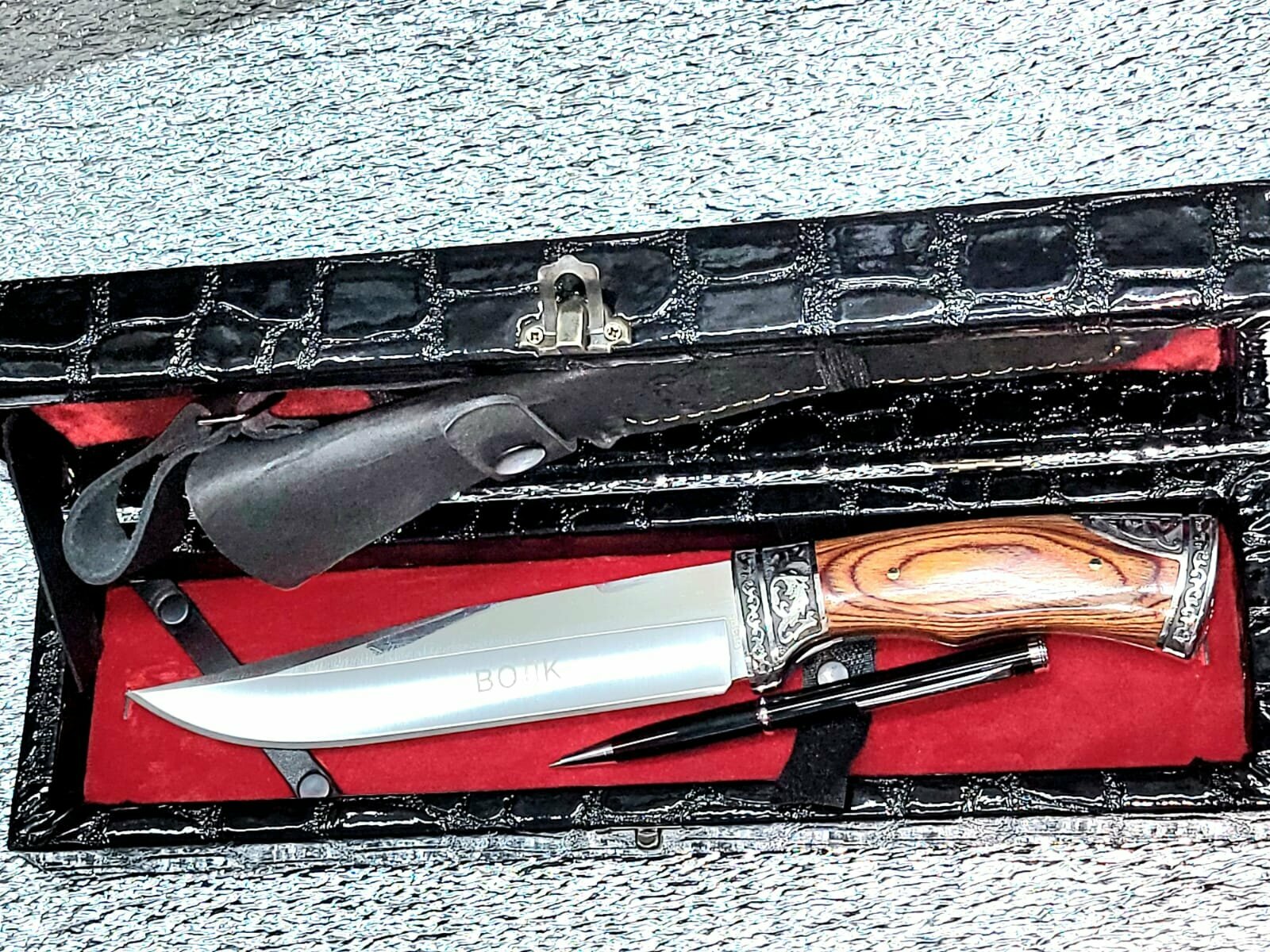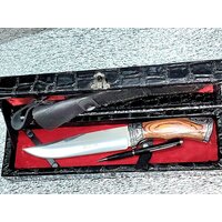 Купить Нож туристический разделочный , Волк 8 в чехле ножнах и подарочный черный кожаный футляр , ручка нож в подарок с доставкой по всей России.
