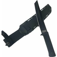 Форма лезвия - американская стилизация танто, такая геометрия позволяет глубокие проникающие удары (рекомендована инструкторами ножевого боя для боевых ножей). - это японская инструментальная углеродистая сталь, являющаяся эквивалентом американской стали 1080. Хорошо держит заточку, но известна в основном благодаря своей прочности. Обух толщиной даёт клинку огромный запас прочности