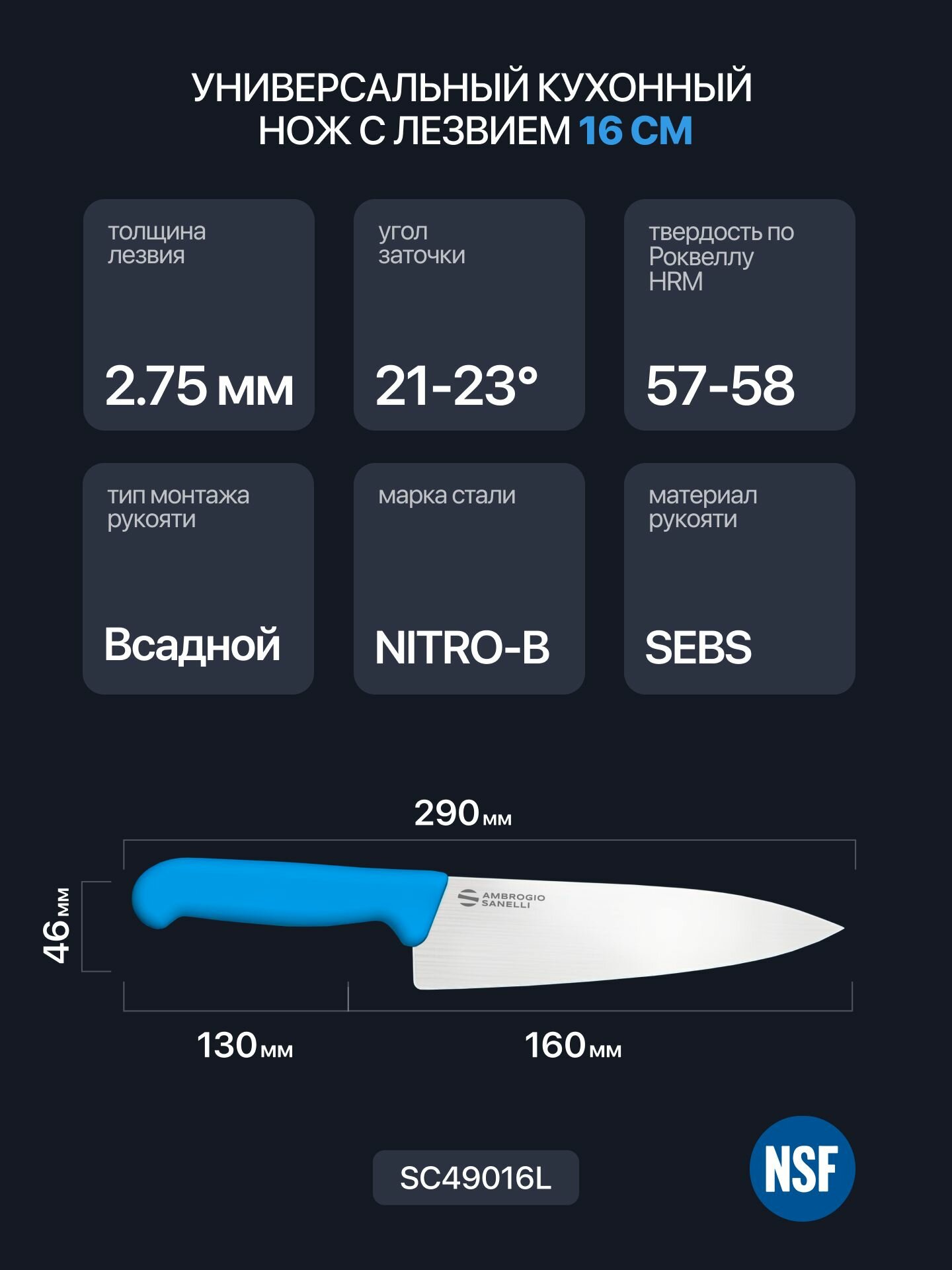 Нож универсальный 16 см поварской Sanelli Ambrogio SC49016L / синяя ручка / профессиональный: сравнение цен, характеристики, фото, актуальное наличие и цены.