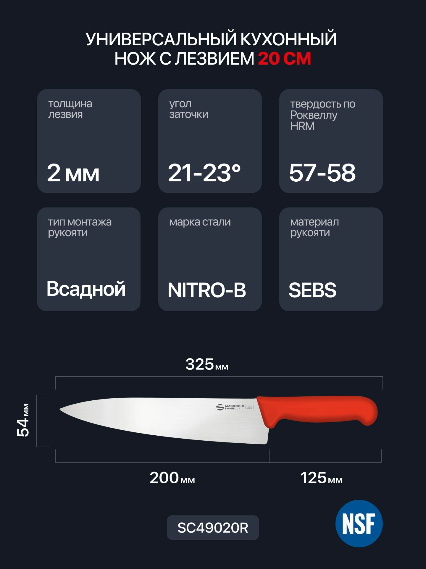 Нож универсальный 20 см поварской Sanelli Ambrogio SC49020R / красная ручка / профессиональный: сравнение цен, характеристики, фото, актуальное наличие и цены.